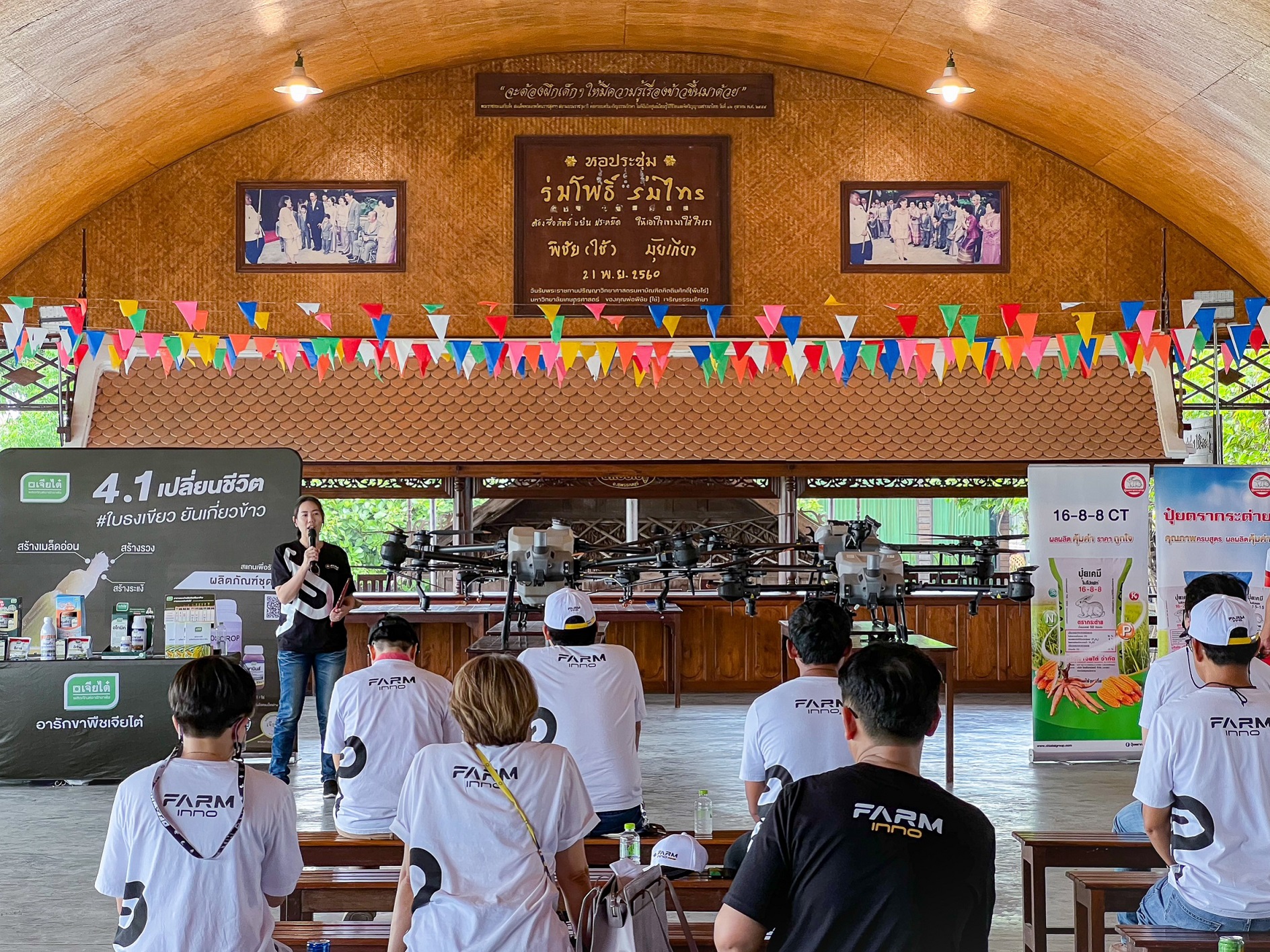 ภายในงาน ฟาร์มอินโน (ไทยแลนด์) ได้สาธิตการบินโดรนเพื่อการเกษตรไร้คนขับรุ่นไฮไลท์อย่าง โดรน XAG รุ่น P100 ตัวจริงเรื่องการหว่าน และโดรน XAG รุ่น V40 ที่สามารถบินหลบหลีกสิ่งกีดขวางได้อย่างแม่นยำ พร้อมแนะนำสินค้าและบริการภายใต้แบรนด์ฟาร์มอินโน (ไทยแลนด์) อาทิ โดรนเพื่อการเกษตรประสิทธิภาพสูงจาก 2 บริษัทเทคโนโลยีทางการเกษตรชั้นแนวหน้าอย่าง DJI และ XAG รวมถึงโรงเรือนอัจฉริยะและแพลตฟอร์มชุมชนเกษตรที่อัดแน่นด้วยองค์ความรู้และโซลูชั่นทางการเกษตร ตอกย้ำพันธกิจของแบรนด์ฟาร์มอินโน (ไทยแลนด์) ในการมุ่งมั่นพัฒนาและส่งมอบสูตรสำเร็จการเพาะปลูกด้วยเทคโนโลยีการเกษตรประสิทธิภาพสูง พร้อมเดินเคียงข้างและผลักดันศักยภาพเกษตรกรไทยสู่เกษตรอัจฉริยะ สำหรับผู้ที่สนใจสินค้าและบริการ ตลอดจนกิจกรรมต่างๆ จากแบรนด์ฟาร์มอินโน (ไทยแลนด์) สามารถติดตามข่าวสารเพิ่มเติมได้ทาง Facebook: FarmInno – Thailand www.facebook.com/FarmInnoThailand