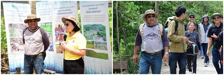 คุณสุธี สมุทระประภูต ผู้ช่วยกรรมการผู้จัดการ หน่วยงานความรับผิดชอบต่อสังคมและการพัฒนาอย่างยั่งยืน ซีพีเอฟ พร้อมด้วย คุณถนอมพงษ์ สังข์ธูป หัวหน้าโครงการฟื้นฟูสภาพป่าไม้ฯ และคณะทำงานซีพีเอฟรักษ์นิเวศฯ ให้การต้อนรับและร่วมให้ข้อมูลแก่นักศึกษาชั้นปีที่ 2 และคณาจารย์คณะอุตสาหกรรมเกษตร สถาบันการจัดการปัญญาภิวัฒน์ จำนวน 32 คน ที่ลงพื้นที่ภาคสนามเรียนรู้การฟื้นฟูป่า ในโครงการซีพีเอฟรักษ์นิเวศ ลุ่มน้ำป่าสัก เขาพระยาเดินธง