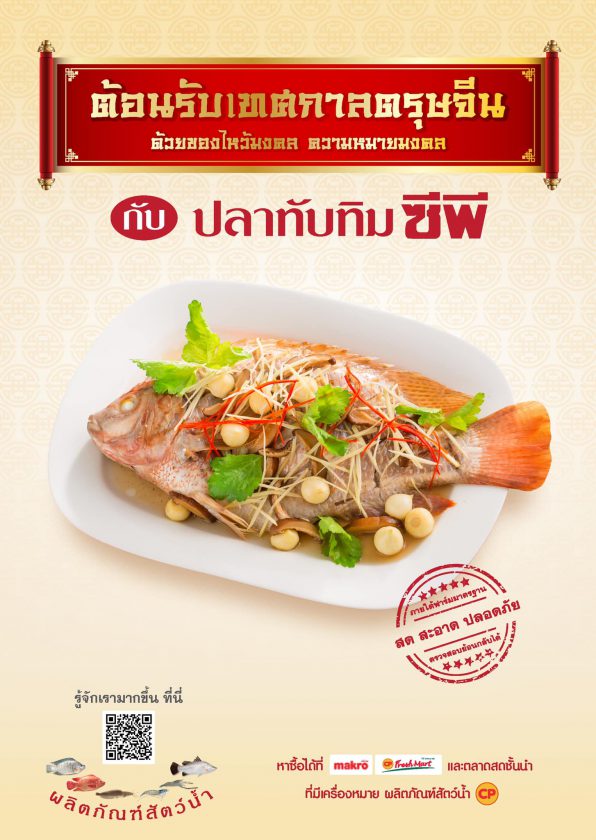 “ปลา” เป็นหนึ่งอาหารมงคล ที่บ่งบอกถึงความอุดมสมบูรณ์ มั่งมี เงินทองเหลือกินเหลือใช้ “ปลาทับทิม ซีพี” มีชื่อที่เป็นมงคล ตัวแทนความร่ำรวย และสีแดงสดสะดุดตา เพิ่มความเป็นสิริมงคล โชคดี เฮงๆ ทั้งปี