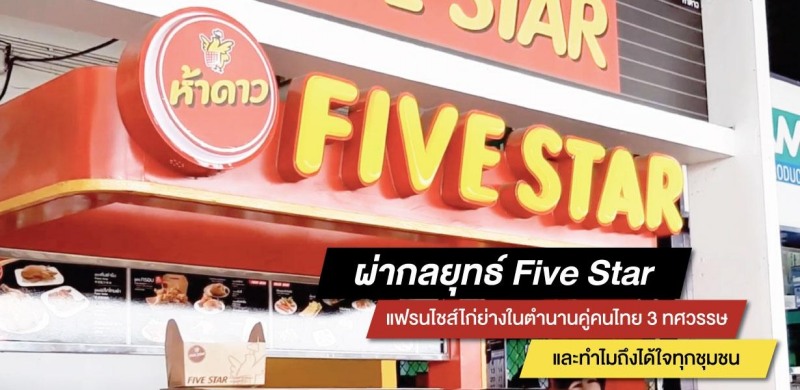 ความสำเร็จที่ทำให้แบรนด์ “Five Star” หรือที่เรียกติดปาก “ไก่ห้าดาว” ไม่เพียงแค่ครองใจผู้บริโภคมายาวนานกว่า 3 ทศวรรษเท่านั้น แต่ยังเป็นแฟรนไชส์ที่มีผู้สนใจอยากเป็นเจ้าของกิจการ เลือกเริ่มต้นธุรกิจกับ Five Star จำนวนมาก มาจาก 5 องค์ประกอบคือ