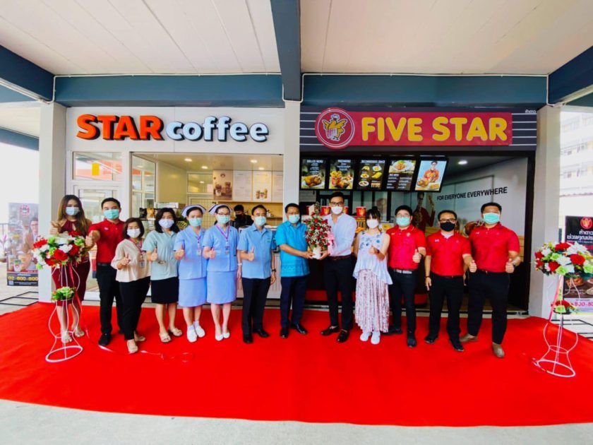 นพ.ศราวุธ กันสืบ รองผู้อำนวยการฝ่ายการแพทย์ รักษาการ ผอ.รพ.ฝาง และคณะผู้บริหาร พร้อมด้วย คุณนรินทร สุนิลหงษ์ ผู้จัดการทั่วไป CPF ธุรกิจห้าดาวภาคเหนือ 1 ร่วมแสดงความยินดีกับ คุณโกสินทร์ ราชกรม เจ้าของร้าน FIVE STAR และ STAR coffee สาขาโรงพยาบาลฝาง อ.ฝาง จ.เชียงใหม่ เปิดให้บริการทุกวัน ตั้งแต่เวลา 7.00-18.00 น.