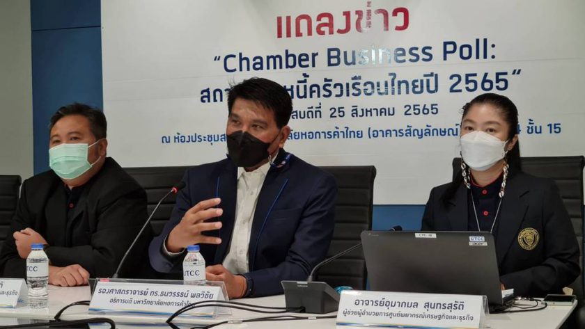 ด้านนายธนวรรธน์ พลวิชัย อธิการบดีมหาวิทยาลัยหอการค้าไทย และประธานศูนย์พยากรณ์เศรษฐกิจและธุรกิจ คาดว่า หนี้ครัวเรือนไทย ณ สิ้นปี 65 จะมีสัดส่วนอยู่ที่ 89.3% ต่อจีดีพี คิดเป็นมูลค่าหนี้ครัวเรือน 14.97 ล้านล้านบาท ซึ่งถือว่าสูงสุดเป็นประวัติการณ์ในรอบ 16 ปี นับตั้งแต่ที่ ม.หอการค้าไทย ได้เคยทำการสำรวจมาตั้งแต่ปี 50 แต่อย่างไรก็ดี สัดส่วนหนี้ครัวเรือนในระดับ 80-90% ต่อจีดีพี ในทางเศรษฐศาสตร์ยังไม่น่ากังวล เพราะเป็นหนี้ที่อยู่ในระบบคิดเป็นสัดส่วนถึง 79% ส่วนหนี้นอกระบบอยู่ที่ 21% ซึ่งชี้ว่า สินเชื่อในระบบยังสามารถทำงานได้ดี โดยส่วนใหญ่เป็นสินเชื่อที่มีทรัพย์สินค้ำประกัน เช่น บ้าน รถยนต์ ซึ่งการกู้เงินในระบบจะมีอัตราดอกเบี้ยต่ำกว่าการกู้เงินนอกระบบมาก อย่างไรก็ดี มูลค่าหนี้ครัวเรือนที่อยู่ในระดับสูง อาจจะเป็นข้อจำกัดที่ทำให้เศรษฐกิจไทยเติบโตได้ไม่โดดเด่นนัก