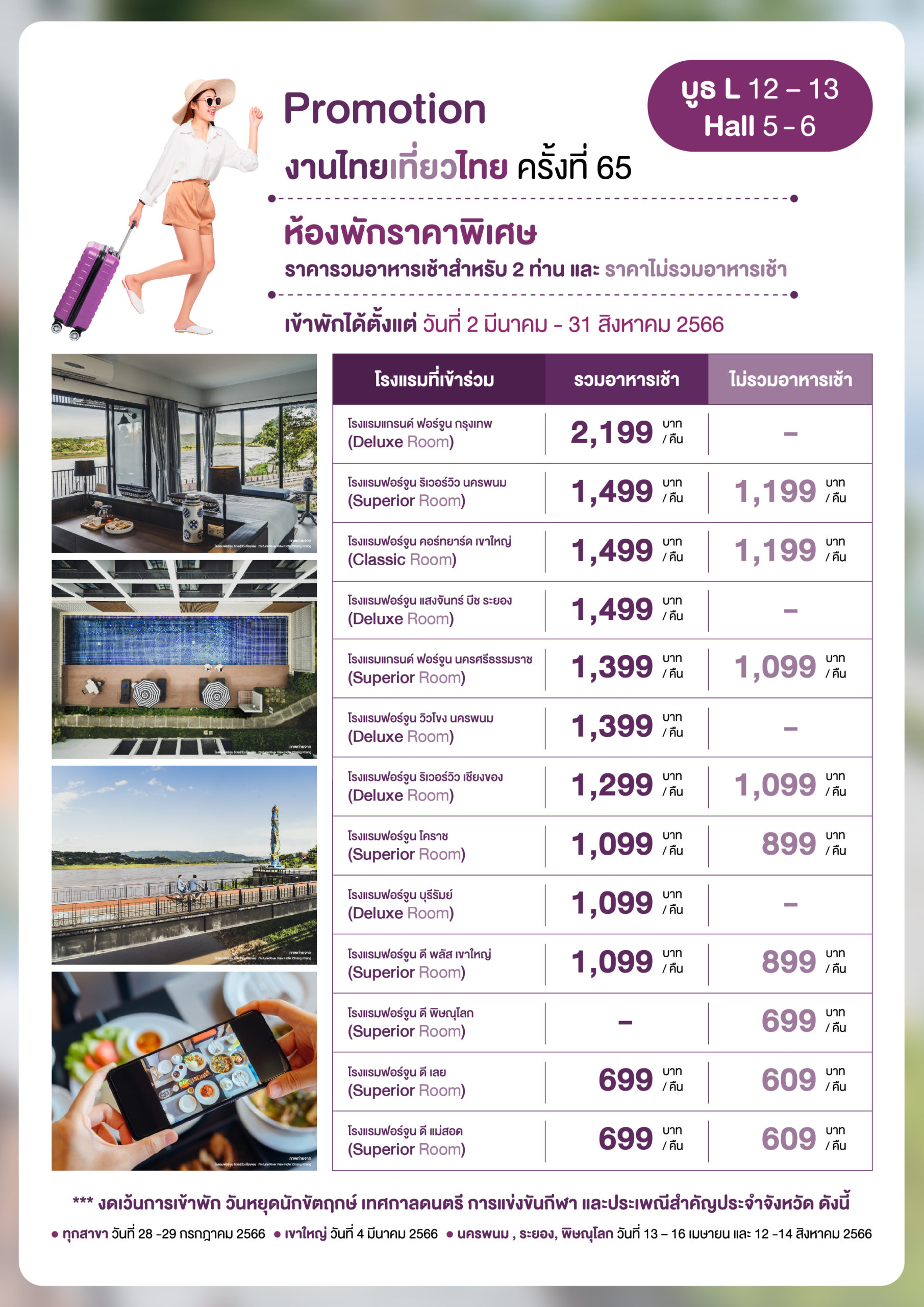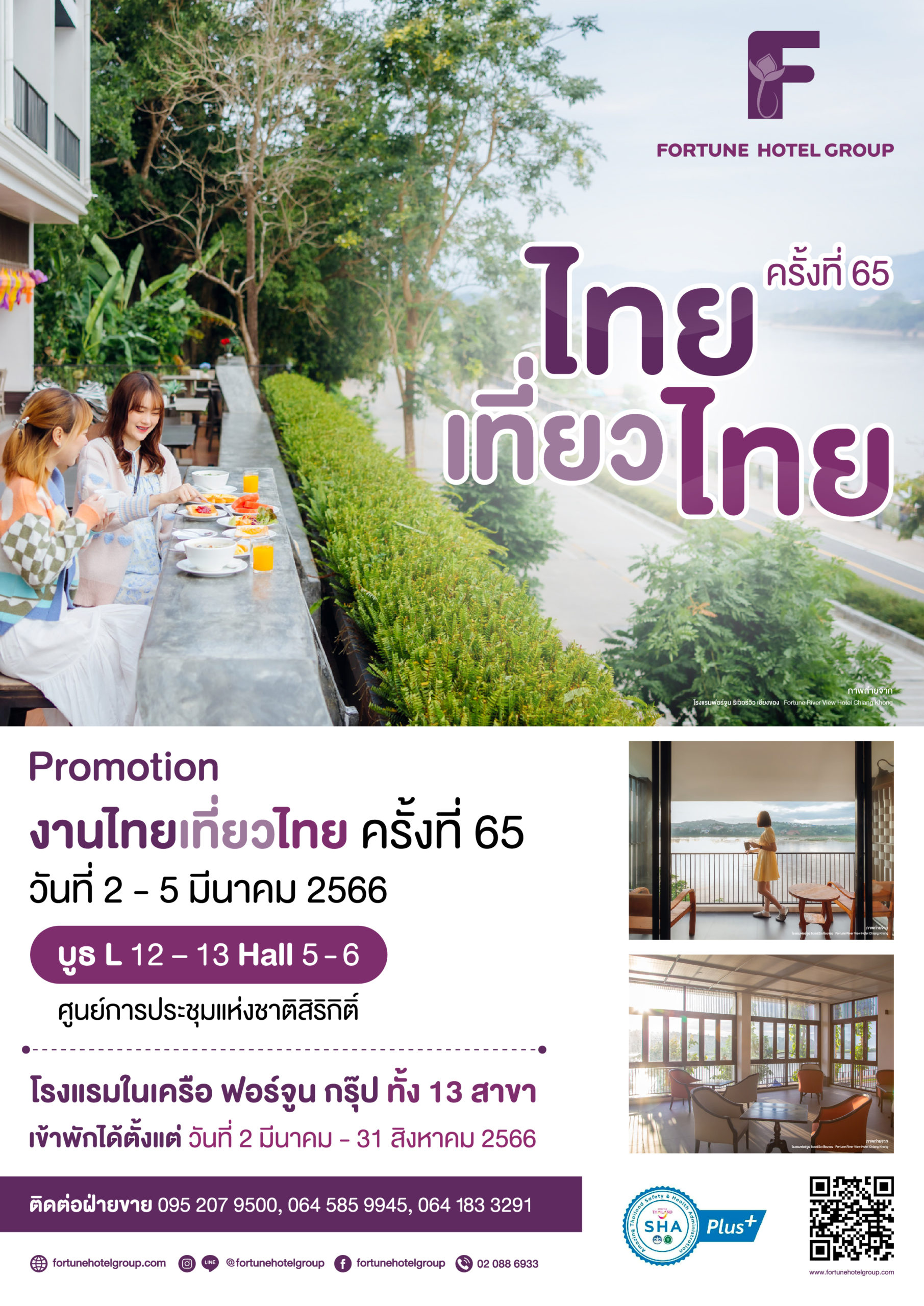 พบกับโปรโมชั่น ซื้อ Voucher ห้องพักราคาพิเศษ โรงแรมในเครือ ฟอร์จูน กรุ๊ป ทั้ง 13 สาขา ที่ บูธ L 12 – 13 Hall 5-6 ศูนย์การประชุมแห่งชาติสิริกิติ์