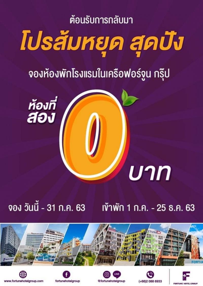 โปรโมชั่นนี้เปิดให้จองได้แล้วตั้งแต่วันนี้ -31 กรกฎาคม 2563 เข้าไปดูรายละเอียดเพิ่มได้ที่ www.fortunehotelgroup.com