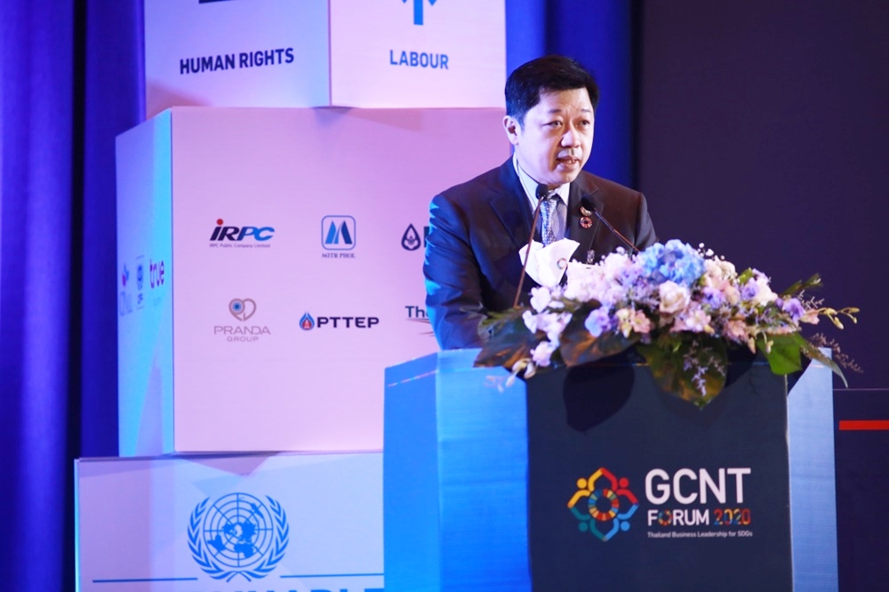 คุณศุภชัย เจียรวนนท์ กล่าวว่า งาน “GCNT FORUM 2020: Thailand Business Leadership for SDGs” เป็นการระดมสรรพกําลังของภาคเอกชนเพื่อน้อมนําหลักปรัชญาเศรษฐกิจพอเพียงมาปฏิบัติจริงในการดําเนินธุรกิจอย่างยั่งยืน สนับสนุนรัฐบาล และภาคส่วนอื่น ๆ ในการบรรลุเป้าหมายการพัฒนาที่ยั่งยืนทั้ง 17ข้อ โดยไม่ทิ้งใครไว้ข้างหลัง พร้อมให้ความมุ่งมั่นของสมาคมฯ ที่จะร่วมมือกับสํานักงาน สหประชาชาติประจําประเทศไทย เพื่อสร้างความเปลี่ยนแปลงอย่างยั่งยืน