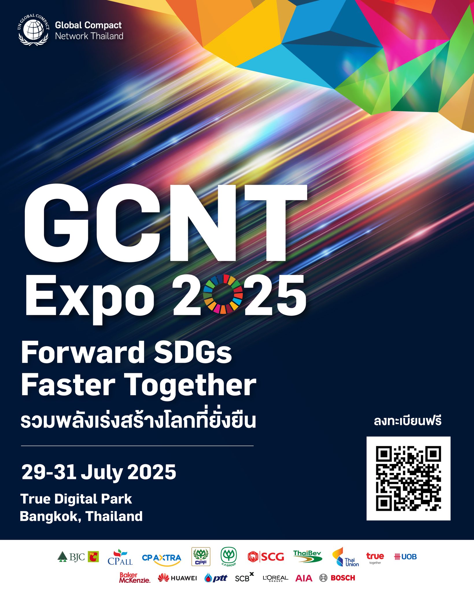 “āļ§āļąāļ™āļ™āļĩāđ‰ āđāļĄāđ‰āļ›āļĢāļ°āđ€āļ—āļĻāđ„āļ—āļĒāļˆāļ°āđ€āļœāļŠāļīāļāļ„āļ§āļēāļĄāļ—āđ‰āļēāļ—āļēāļĒāļŦāļĨāļēāļĒāļ”āđ‰āļēāļ™ āđāļ•āđˆāđ€āļĢāļēāļ­āļĒāļđāđˆāđƒāļ™āļˆāļļāļ”āļ—āļĩāđˆāđ„āļĄāđˆāļ­āļēāļˆāļ–āļ­āļĒāļŦāļĨāļąāļ‡āļāļĨāļąāļšāđ„āļ›āđ„āļ”āđ‰ (Point of No Return) āđāļĨāļ°āļ™āļĩāđˆāļ„āļ·āļ­āđ‚āļ­āļāļēāļŠāļ—āļĩāđˆāļŠāļģāļ„āļąāļāļ‚āļ­āļ‡āļ—āļļāļāļ„āļ™ āļ—āļļāļāļ āļēāļ„āļŠāđˆāļ§āļ™ āļ—āļĩāđˆāļˆāļ°āļĨāļļāļāļ‚āļķāđ‰āļ™āļĄāļēāļĢāļ§āļĄāļžāļĨāļąāļ‡ āđ€āļžāļ·āđˆāļ­āļŠāļĢāđ‰āļēāļ‡āļāļēāļĢāđ€āļ›āļĨāļĩāđˆāļĒāļ™āđāļ›āļĨāļ‡āđ€āļŠāļīāļ‡āļšāļ§āļ āļ”āđ‰āļ§āļĒāļāļēāļĢāđ€āļĢāđˆāļ‡āđ€āļ”āļīāļ™āļŦāļ™āđ‰āļēāļšāļĢāļĢāļĨāļļ SDGs āđƒāļŦāđ‰āđ€āļĢāđ‡āļ§āļ‚āļķāđ‰āļ™ āđ€āļ›āđ‡āļ™āļĢāļđāļ›āļ˜āļĢāļĢāļĄ āđāļĨāļ°āļ§āļąāļ”āļœāļĨāđ„āļ”āđ‰āđ„āļ›āļžāļĢāđ‰āļ­āļĄāđ† āļāļąāļ™ āđ€āļĢāļēāļŦāļ§āļąāļ‡āļ§āđˆāļē GCNT EXPO āļˆāļ°āđ€āļ›āđ‡āļ™āđ€āļ§āļ—āļĩāļ•āđ‰āļ™āđāļšāļšāļ”āđ‰āļēāļ™āļ„āļ§āļēāļĄāļĒāļąāđˆāļ‡āļĒāļ·āļ™āļ—āļĩāđˆāļŠāļĢāđ‰āļēāļ‡āļœāļĨāļāļĢāļ°āļ—āļšāđ€āļŠāļīāļ‡āļšāļ§āļāđ„āļ”āđ‰āļĄāļēāļāļ—āļĩāđˆāļŠāļļāļ”āđ€āļ§āļ—āļĩāļŦāļ™āļķāđˆāļ‡āđƒāļ™āļ›āļĢāļ°āđ€āļ—āļĻāđ„āļ—āļĒ āļ—āļĩāđˆāļˆāļ°āļĒāļāļĢāļ°āļ”āļąāļšāļ„āļ§āļēāļĄāļĢāđˆāļ§āļĄāļĄāļ·āļ­āļĢāļ°āļŦāļ§āđˆāļēāļ‡āļ āļēāļ„āļ˜āļļāļĢāļāļīāļˆāļāļąāļšāļžāļąāļ™āļ˜āļĄāļīāļ•āļĢāļˆāļēāļāļ—āļļāļāļ āļēāļ„āļŠāđˆāļ§āļ™ āđ€āļžāļ·āđˆāļ­āļ‚āļąāļšāđ€āļ„āļĨāļ·āđˆāļ­āļ™āļāļēāļĢāļšāļĢāļĢāļĨāļļāđ€āļ›āđ‰āļēāļŦāļĄāļēāļĒ SDGs āđƒāļ™āļĢāļ°āļ”āļąāļš āļ›āļĢāļ°āđ€āļ—āļĻāļ­āļĒāđˆāļēāļ‡āļˆāļĢāļīāļ‡āļˆāļąāļ‡āđāļĨāļ°āļ•āđˆāļ­āđ€āļ™āļ·āđˆāļ­āļ‡ āļ­āļēāļ—āļīāļāļēāļĢāļœāļĨāļąāļāļ”āļąāļ™āļ™āđ‚āļĒāļšāļēāļĒāđ€āļžāļ·āđˆāļ­āļŠāđˆāļ‡āđ€āļŠāļĢāļīāļĄāļāļēāļĢāļ”āļģāđ€āļ™āļīāļ™āļ˜āļļāļĢāļāļīāļˆāļ—āļĩāđˆāļĒāļąāđˆāļ‡āļĒāļ·āļ™ āļāļēāļĢāļ™āļģāđ€āļŠāļ™āļ­āļ™āļ§āļąāļ•āļāļĢāļĢāļĄāļ—āļēāļ‡āļ˜āļļāļĢāļāļīāļˆāđ€āļžāļ·āđˆāļ­āļ„āļ§āļēāļĄāļĒāļąāđˆāļ‡āļĒāļ·āļ™āđƒāļ™āļĢāļđāļ›āđāļšāļšāļ•āđˆāļēāļ‡āđ† āļ‹āļķāđˆāļ‡āļˆāļ°āđ€āļ›āđ‡āļ™āļĢāļēāļāļāļēāļ™āļŠāļģāļ„āļąāļāļ—āļĩāđˆāļˆāļ°āđ€āļ›āļĨāļĩāđˆāļĒāļ™āļœāđˆāļēāļ™āļ›āļĢāļ°āđ€āļ—āļĻāđ„āļ—āļĒāđ„āļ›āļŠāļđāđˆāļ„āļ§āļēāļĄāļĒāļąāđˆāļ‡āļĒāļ·āļ™â€ āļ„āļļāļ“āļĻāļļāļ āļŠāļąāļĒ āļāļĨāđˆāļēāļ§