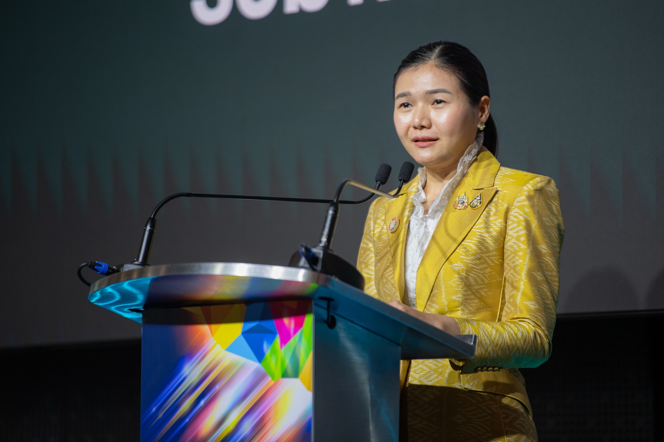 พร้อมกันนี้ คุณจิราพร สินธุไพร รัฐมนตรีประจำสำนักนายกรัฐมนตรี ขึ้นกล่าวปาฐกถาพิเศษ ระบุว่า “ในช่วงทศวรรษที่ผ่านมา โลกเผชิญกับความท้าทายหลากหลายรูปแบบ ไม่ว่าจะเป็นภาวะโลกร้อน ความเปราะบางของระบบเศรษฐกิจ หรือความเหลื่อมล้ำทางสังคม สิ่งเหล่านี้สะท้อนให้เห็นว่า การเติบโตทางเศรษฐกิจเพียงอย่างเดียวไม่อาจเพียงพอ หากปราศจากการบริหารจัดการทรัพยากรอย่างมีความรับผิดชอบและยั่งยืน ดังนั้น การนำหลักการพัฒนาอย่างยั่งยืนมาประยุกต์ใช้จึงมีบทบาทสำคัญสำหรับการสร้างประโยชน์ร่วม บริหารความเสี่ยง และผลักดันนวัตกรรมใหม่ๆ ให้เกิดขึ้น ขณะเดียวกัน ยังเป็นการต่อยอดพลัง Soft Power ให้กลายเป็นแรงบันดาลใจ และแรงดึงดูดสำคัญเพื่อยกระดับขีดความสามารถของประเทศ”