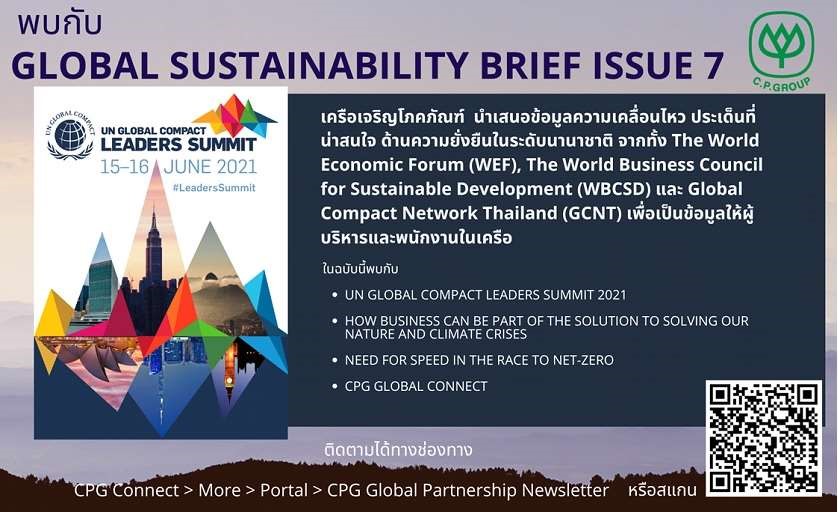 เครือเจริญโภคภัณฑ์ นำเสนอข้อมูลความเคลื่อนไหว ประเด็นที่น่าสนใจ ด้านความยั่งยืนในระดับนานาชาติ จากทั้ง The World Economic Forum (WEF), The World Business Council for Sustainable Development (WBCSD) และ Global Compact Network Thailand (GCNT) เพื่อเป็นข้อมูลให้กับผู้บริหารและพนักงานภายในเครือฯ
