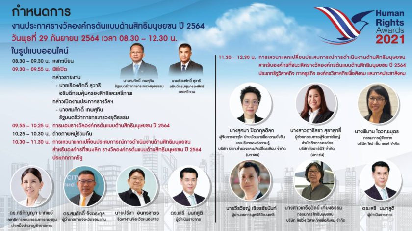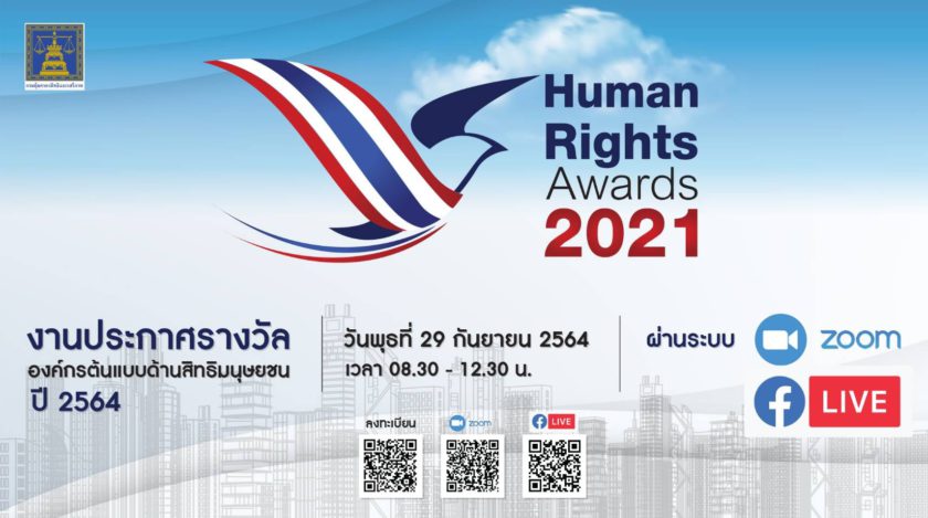 ขอเชิญรับชมงานประกาศรางวัลองค์กรต้นแบบด้านสิทธิมนุษยชน ปี 2564 “Human Rights Awards 2021” จัดโดยกรมคุ้มครองสิทธิและเสรีภาพ กระทรวงยุติธรรม ในรูปแบบออนไลน์ รูปโฉมใหม่ภายใต้วิถี New Normal ในเวลา 09.30 น. วันนี้