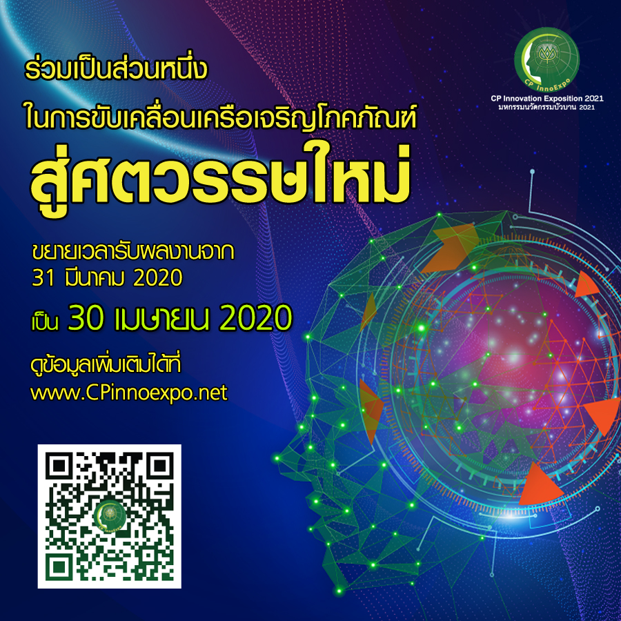 คณะกรรมการวิชาการ มหกรรมนวัตกรรมบัวบานฯเครือเจริญโภคภัณฑ์ 2021 ได้หารือและเห็นสมควรให้ ขยายเวลาส่งผลงาน นวัตกรรม มหกรรมนวัตกรรมบัวบานฯ ถึงวันที่ 30 เมษายน 2563 เพื่อให้สอดคล้องกับสถานการณ์ปัจจุบัน