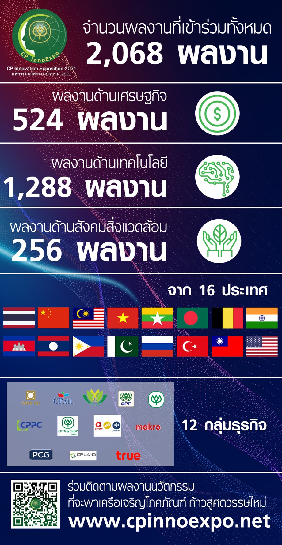 ทั้งนี้ผลงานนวัตกรรมทั้ง3ด้าน เป็นผลงานจากประเทศไทย รวม 1,086 จากประเทศจีน 817ผลงาน และจากประเทศอื่นๆ 165 ผลงาน