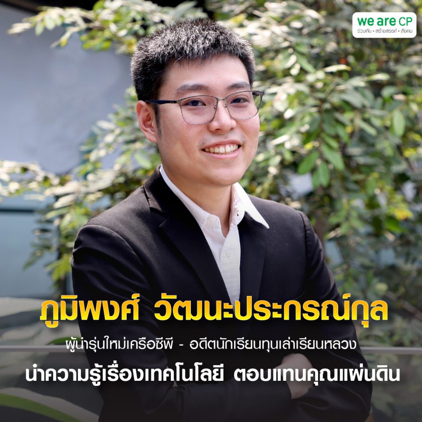 ด้วยสายพระเนตรที่ยาวไกลของในหลวงร.9 ที่ได้พระราชทานทุนเล่าเรียนหลวงในหลายศาสตร์หลายแขนงให้ผู้ที่ได้รับทุนไปศึกษาต่อในต่างประเทศได้กลับมาพัฒนาประเทศในหลายด้าน เฉกเช่นเดียวกับ “ภูมิพงศ์ วัฒนะประกรณ์กุล” ผู้ช่วยกรรมการผู้จัดการ สำนักงานรองประธานอาวุโส เครือเจริญโภคภัณฑ์ อดีตนักเรียนทุนเล่าเรียนหลวงด้านไอที ที่ได้รับพระมหากรุณาธิคุณจากในหลวงรัชกาลที่ 9 ไปศึกษาต่อที่ Massachusetts Institute of Technology (MIT) มหาวิทยาลัยชั้นนำด้านเทคโนโลยีในสหรัฐอเมริกา ด้วยความมุ่งมั่นสืบสานพระราชปณิธานในหลวง ร.9 “พระบิดาแห่งเทคโนโลยีไทย” ที่จะนำความรู้ด้านนวัตกรรมเทคโนโลยีมาปรับใช้ในการทำงานที่เครือเจริญโภคภัณฑ์เพื่อร่วมพัฒนาคุณภาพชีวิตให้คนในประเทศมีความเป็นอยู่ที่ดีขึ้น
