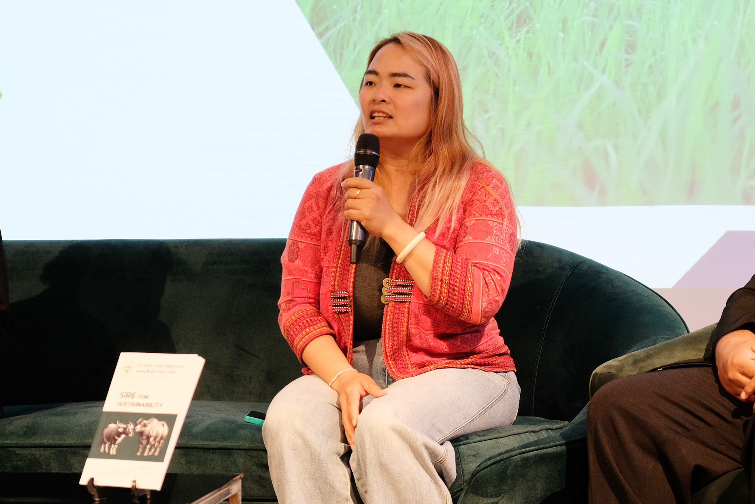 คุณจิราภัค ขำเอนก ได้แบ่งปันประสบการณ์ในฐานะเกษตรกรเกี่ยวกับ ‘พลังของเครือข่ายผู้เลี้ยงกระบือ และบทบาทของธนาคารโค-กระบือ’ ซึ่งเป็นกลไกสำคัญที่ช่วยให้เกษตรกรรายย่อยสามารถเลี้ยงกระบือได้อย่างมั่นคงและยั่งยืน นอกจากนี้ ยังได้แลกเปลี่ยนมุมมองเกี่ยวกับบทบาทของเครือข่ายเกษตรกรในการเสริมสร้างความเข้มแข็งให้กับชุมชน ไม่เพียงแต่ในด้านการพัฒนาสายพันธุ์และการเลี้ยงกระบือเท่านั้น แต่ยังรวมถึงโอกาสในการผลิตน้ำนมกระบือ ซึ่งเป็นแนวทางในการเพิ่มมูลค่าผลผลิตและขยายโอกาสทางการตลาด ทั้งยังมีการหารือถึงแนวทางในการพัฒนาระบบตลาดให้เกิดความเป็นธรรมกับเกษตรกรผู้เลี้ยงกระบืออีกด้วย