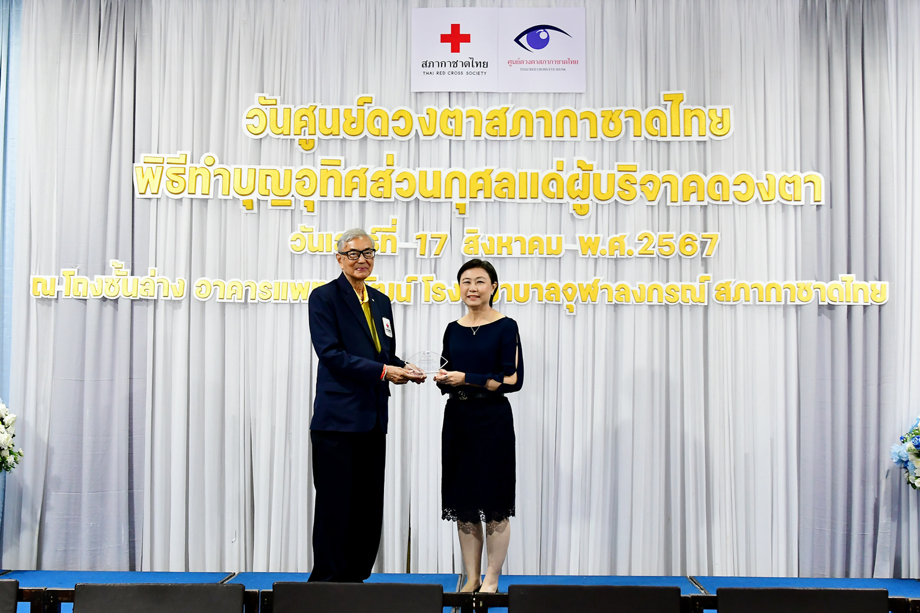 นายเตช บุนนาค เลขาธิการสภากาชาดไทย เป็นประธานเปิดงาน “วันศูนย์ดวงตาสภากาชาดไทย ประจำปี 2567” พร้อมมอบโล่ขอบคุณแก่ เครือเจริญโภคภัณฑ์ และ ทรู คอร์ปอเรชั่น โดย นางรุ่งฟ้า เกียรติพจน์ หัวหน้าสายงานสื่อสารแบรนด์ และผู้ช่วยบริหารงานประธานกรรมการ บมจ. ทรู คอร์ปอเรชั่น เป็นตัวแทนรับมอบ ณ อาคารแพทยพัฒน์ คณะแพทยศาสตร์ จุฬาลงกรณ์มหาวิทยาลัย ในฐานะองค์กรที่ให้การสนับสนุนและส่งเสริมกิจกรรมรณรงค์การบริจาคดวงตา ผ่านโครงการ “Let Them See Love” ต่อเนื่องเป็นปีที่ 17 ทั้งเชิญชวนลูกค้าและประชาชนร่วมสมทบทุนค่าใช้จ่ายเพื่อใช้ในกระบวนการบริจาคอวัยวะและดวงตา รวมถึงเปิดช่องทางให้ลูกค้าทรูร่วมบริจาคผ่านทางทาง SMS โดยพิมพ์ 10 เพื่อบริจาค 10 บาท* หรือ พิมพ์ 100 เพื่อบริจาค 100 บาท* ส่งไปที่หมายเลข 91255 (*ไม่รวมภาษีมูลค่าเพิ่ม) หรือบริจาคเงินผ่านแอปพลิเคชัน ทรูมันนี่ วอลเล็ท หรือโอนเงินบริจาคเข้าบัญชีออมทรัพย์ “ศูนย์ดวงตา สภากาชาดไทย” เลขที่บัญชี 045-231390-2 ธนาคาร ไทยพาณิชย์ สาขาสภากาชาดไทย ได้ตั้งแต่วันนี้ – 31 ธ.ค. 2567