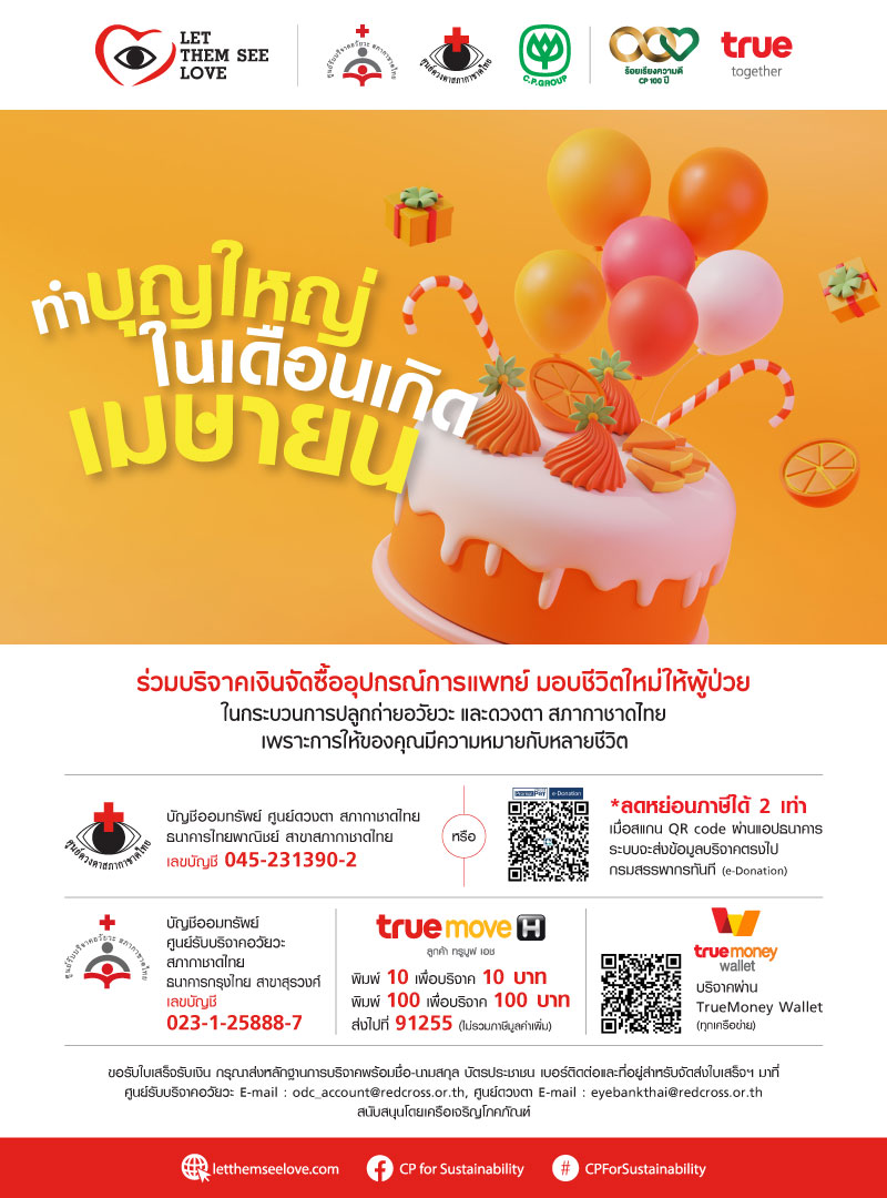 ชวนคนเกิดเดือนเมษายน ร่วมทำบุญใหญ่ในเดือนเกิด กับโครงการ Let Them See Love