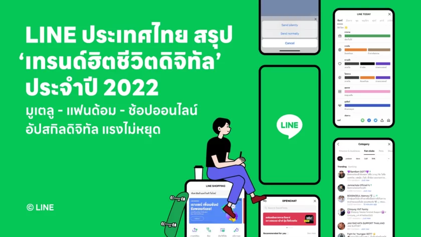 LINE ประเทศไทย ระบุว่า ‘เทรนด์ฮิตชีวิตดิจิทัล’ ประจำปี 2565 ที่มาจากอินไซต์ของผู้ใช้งานรวมกว่า 53 ล้านคน ผ่านการใช้บริการบนแอป LINE ที่ครอบคลุมทุกไลฟ์สไตล์ของชีวิตดิจิทัล พบว่ากระแสความนิยมของประชากรออนไลน์ไทย ให้ความสนใจมูเตลู ตามด้วยเคป๊อป ช้อปออนไลน์ และการอัปสกิลดิจิทัลมากขึ้น และถือเป็นที่น่าจับตามอง และได้รับความนิยมไปถึงปี 2566