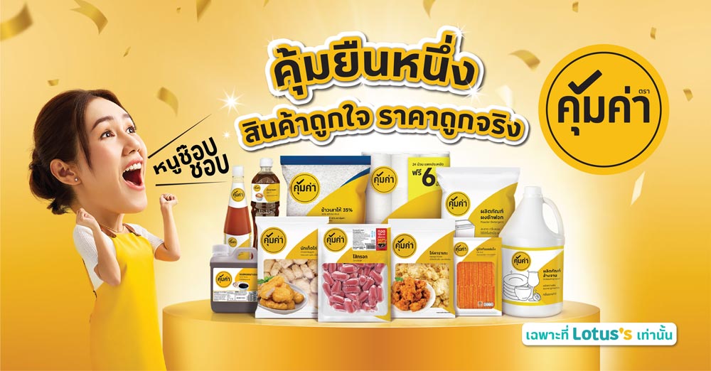 นางสาววรวรรณ เพียรลิขิตวงศ์ ผู้อำนวยการอาวุโส สายงานการตลาด โลตัส เปิดเผยว่า “โลตัส ได้พัฒนาสินค้าแบรนด์ “คุ้มค่า” เพื่อเป็นทางเลือกให้กับลูกค้ามาเป็นปีที่ 2 โดยเราให้ความสำคัญกับมาตรฐานด้านคุณภาพและความปลอดภัย ใช้วัตถุดิบและกระบวนการผลิตที่ทันสมัยและได้มาตรฐาน แต่ยังคงความคุ้มค่า เหมาะกับการอุปโภคบริโภคภายในครัวเรือน ร้านค้า ร้านอาหารรายย่อย ซึ่งได้รับผลตอบรับที่ดีจากลูกค้าในทุกผลิตภัณฑ์ทั้งของกินและของใช้ โดยเฉพาะสินค้าประเภทอาหารและของทอด อาทิ ข้าวสาร ไส้กรอก ลูกชิ้น นักเก็ต ซึ่งได้รับความนิยมอย่างสูงจากลูกค้า เนื่องจากพฤติกรรมผู้บริโภคส่วนใหญ่นิยมรับประทานที่บ้าน มากกว่ารับประทานนอกบ้าน สอดรับกับสภาวะของเศรษฐกิจในปัจจุบัน อีกทั้งยังปรุงง่าย รสชาติอร่อย ขนาดแพ็คใหญ่รับประทานได้ทั้งครอบครัวเหมาะกับการจัดเลี้ยง สังสรรค์ในช่วงเทศกาลต่างๆ จึงทำให้ปีนี้แบรนด์ “คุ้มค่า” มุ่งเดินหน้าเปิดตัวสินค้าใหม่ ในกลุ่มประเภทอาหารพร้อมปรุง อาหารแช่แข็ง และอีกหลายรายการ โดยผลิตภัณฑ์ภายใต้เฮ้าส์แบรนด์ของโลตัส มาจากผู้ผลิตเอสเอ็มอี ซึ่งเป็นการสนับสนุนผู้ประกอบการไทยให้เติบโตอีกด้วย นอกจากนี้ ยังช่วยให้พี่น้องประชาชนและผู้ประกอบการรายย่อยได้ประหยัดท่ามกลางสภาวะค่าครองชีพที่ปรับตัวสูง การันตีได้สินค้าราคาถูกและมีคุณภาพ ซึ่งวางจำหน่ายเฉพาะที่โลตัสเท่านั้น”