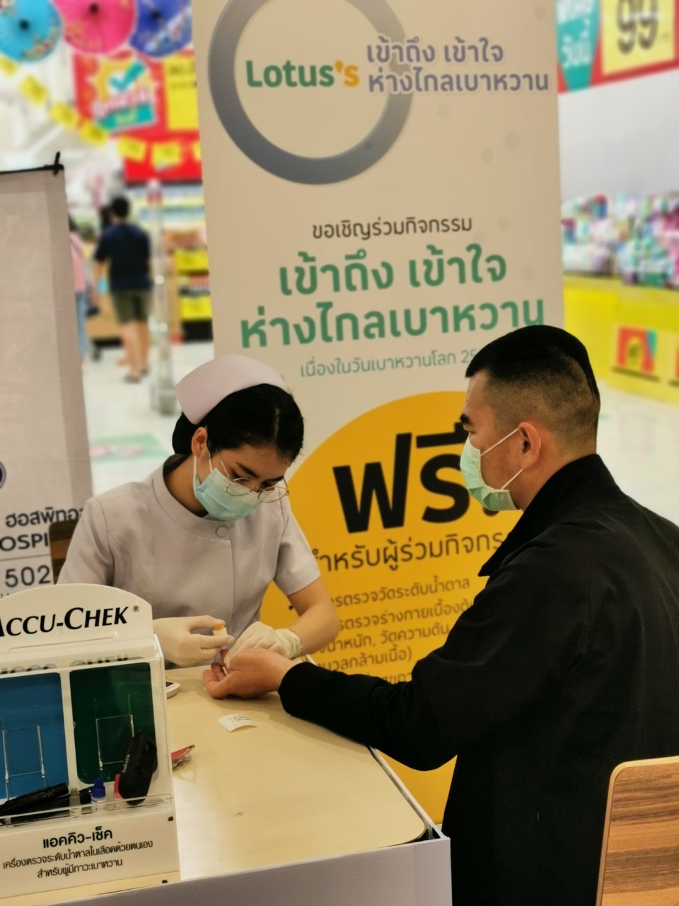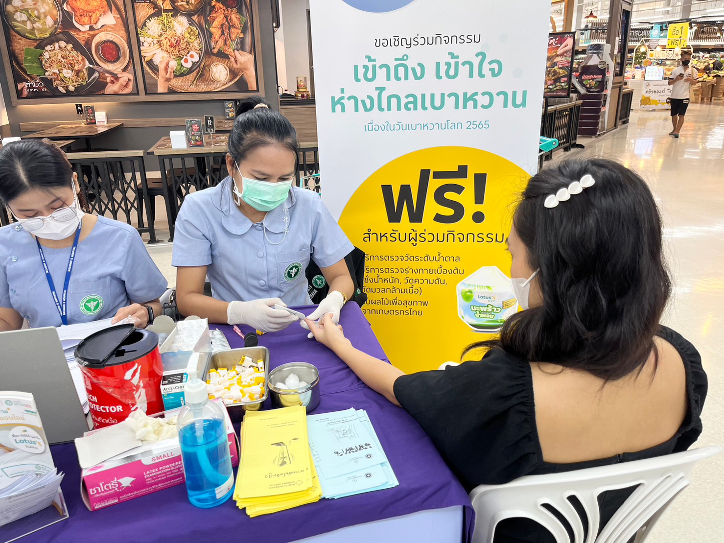 โลตัส สนับสนุนให้คนไทยห่างไกลเบาหวาน เนื่องในวันเบาหวานโลก 14 พฤศจิกายนของทุกปี จัดกิจกรรม “เข้าถึง เข้าใจ ห่างไกลเบาหวาน” ต่อเนื่องเป็นปีที่ 5 โดยมีบริการตรวจวัดระดับน้ำตาล บริการตรวจร่างกายเบื้องต้น และแจกมะพร้าวเพื่อสุขภาพจากเกษตรกร เพื่อสนับสนุนการมีสุขภาพดีของคนไทย และส่งเสริมการเข้าถึงบริการสุขภาพขั้นพื้นฐานของประชาชน ตามความมุ่งมั่นของโลตัสที่ต้องการสนับสนุนให้คนไทยมีสุขภาพดี ผ่านการคัดสรรสินค้าอาหารสดที่ครบถ้วนตามหลักโภชนาการ คุณภาพสูง สะอาด ปลอดภัย และพัฒนาสูตรอาหารแบรนด์โลตัสเพื่อส่งเสริมสุขภาพดี ลดหวาน มัน เค็ม ส่งเสริมการป้องกันกลุ่มโรคไม่ติดต่อ (NCDs) จากการรับประทานอาหารที่ดี สนับสนุนการออกกำลังกาย และการตรวจสุขภาพอย่างสม่ำเสมอ