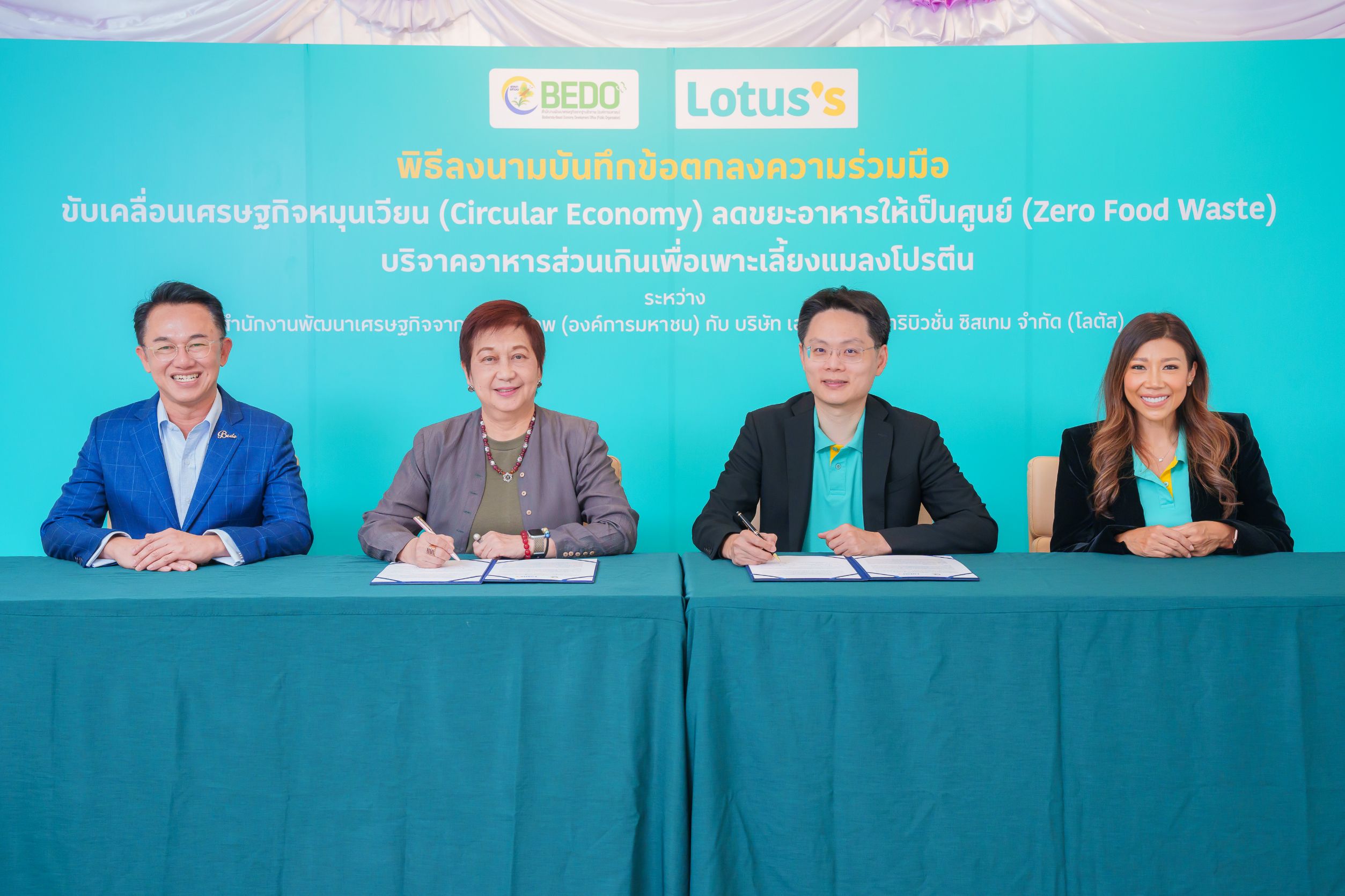 โลตัส ร่วมกับ สำนักงานพัฒนาเศรษฐกิจจากฐานชีวภาพ (องค์การมหาชน) หรือเบโด้ (BEDO) สังกัดกระทรวงทรัพยากรธรรมชาติและสิ่งแวดล้อม ลงนามบันทึกข้อตกลงความร่วมมือต่อยอดโครงการเพาะเลี้ยงแมลงโปรตีน (Black Soldier Fly – BSF) สำหรับเป็นอาหารสัตว์ทางการเกษตรเพื่อลดต้นทุนอาหารเลี้ยงสัตว์ให้กับเกษตรกร โดยโลตัส จะบริจาคอาหารที่จำหน่ายไม่หมดจากสาขาเพื่อใช้เป็นอาหารในการเพาะเลี้ยงแมลงโปรตีน เดินหน้าสู่เป้าหมายลดขยะอาหารให้เป็นศูนย์ (Zero Food Waste) ภายในปี ค.ศ. 2030