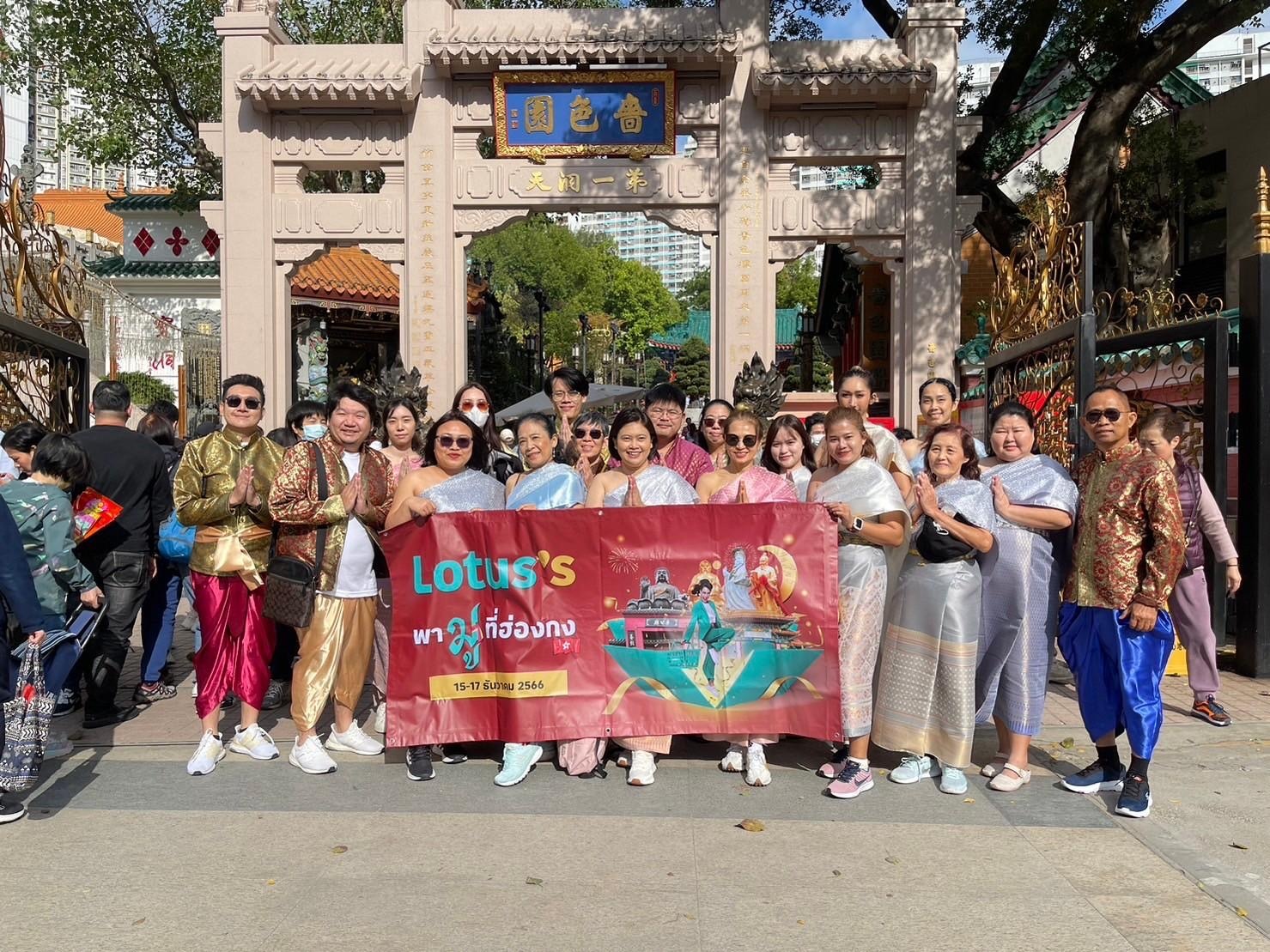 เมื่อเร็ว ๆ นี้ โลตัส พาลูกค้าผู้โชคดีกว่า 20 ท่าน บินลัดฟ้าสู่ฮ่องกง ในกิจกรรม “ช้อปโลตัส ลุ้นมูที่ฮ่องกง” สัมผัสประสบการณ์สุดพิเศษ บิน กิน เที่ยว ฟรีตลอด 3 วัน 2 คืน พร้อมเสริมความสิริมงคลรับปีมังกรทอง โดยลูกค้าผู้โชคดีมาจากการร่วมลุ้นรางวัลส่งใบเสร็จเมื่อช้อปครบ 500 บาท จากโลตัส 3 สาขา ได้แก่ โลตัส นอร์ธ ราชพฤกษ์, โลตัส พรีเว่ และโลตัส โก เฟรช สาขาทรู ดิจิทัล พาร์ค โดยลูกค้าผู้โชคดีได้ร่วมสัมผัสประสบการณ์สุดพิเศษในสถานที่ท่องเที่ยวยอดฮิตของฮ่องกง พร้อมสร้างสีสันและเผยแพร่วัฒนธรรมของประเทศไทย ด้วยการชวนลูกค้าผู้ร่วมคณะ สวมใส่ชุดไทยทัวร์ไหว้พระเสริมสิริมงคล ที่ 6 วัดดัง อาทิ วัดหวังต้าเซียน วัดแชกงหมิว วัดโปหลิน วัดเจ้าแม่กวนอิมทินหัว วัดเจ้าแม่กวนอิมฮ่องฮำ และวัดไทหว่อ มอบความสุขและสร้างความประทับใจให้กับลูกค้า สอดคล้องกับความมุ่งมั่นของโลตัสที่ต้องการมอบความรู้สึกดีดีทุกวันให้ลูกค้า ผ่านกิจกรรมพิเศษที่ตอบสนองไลฟ์สไตล์ของคนทุกเพศทุกวัย