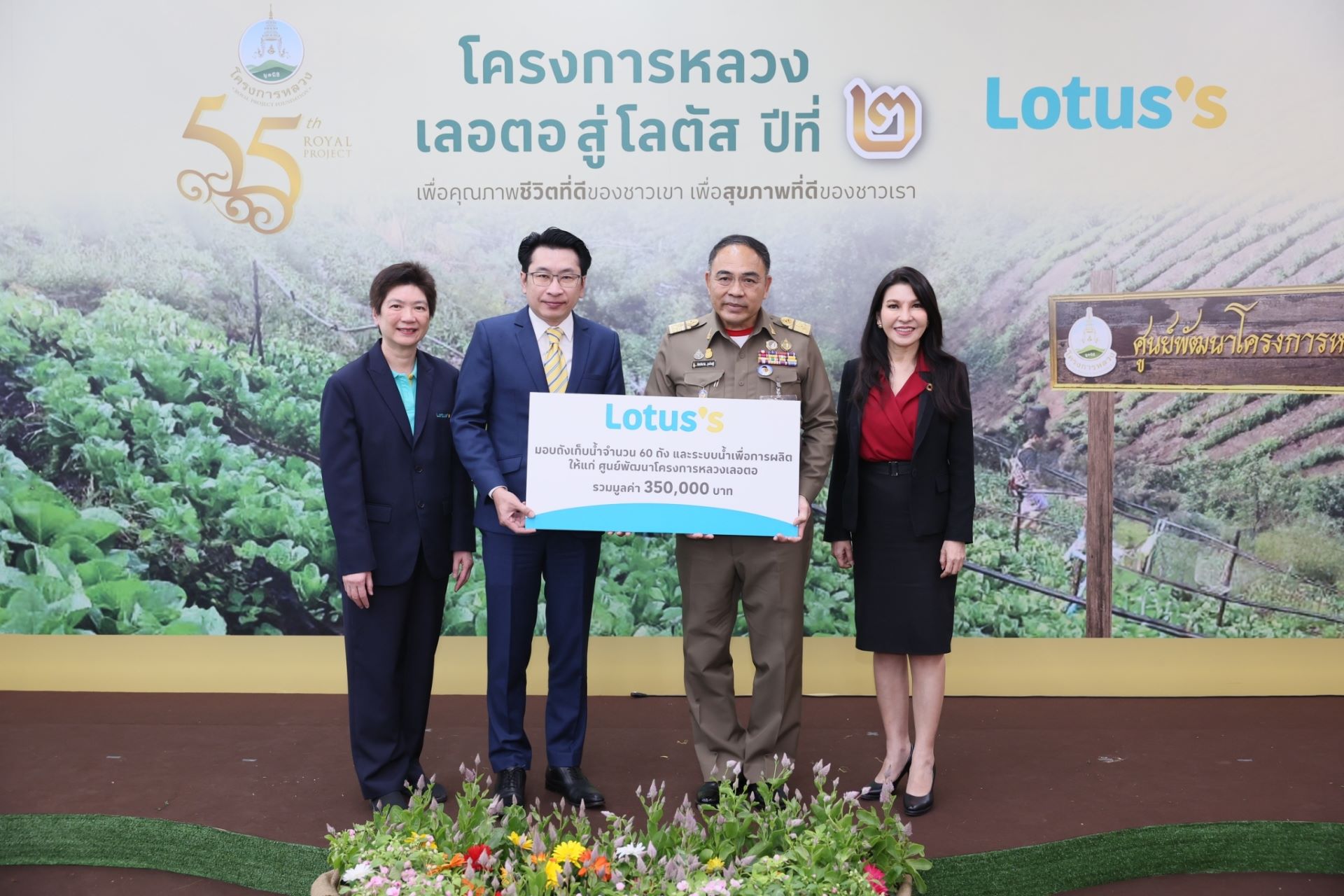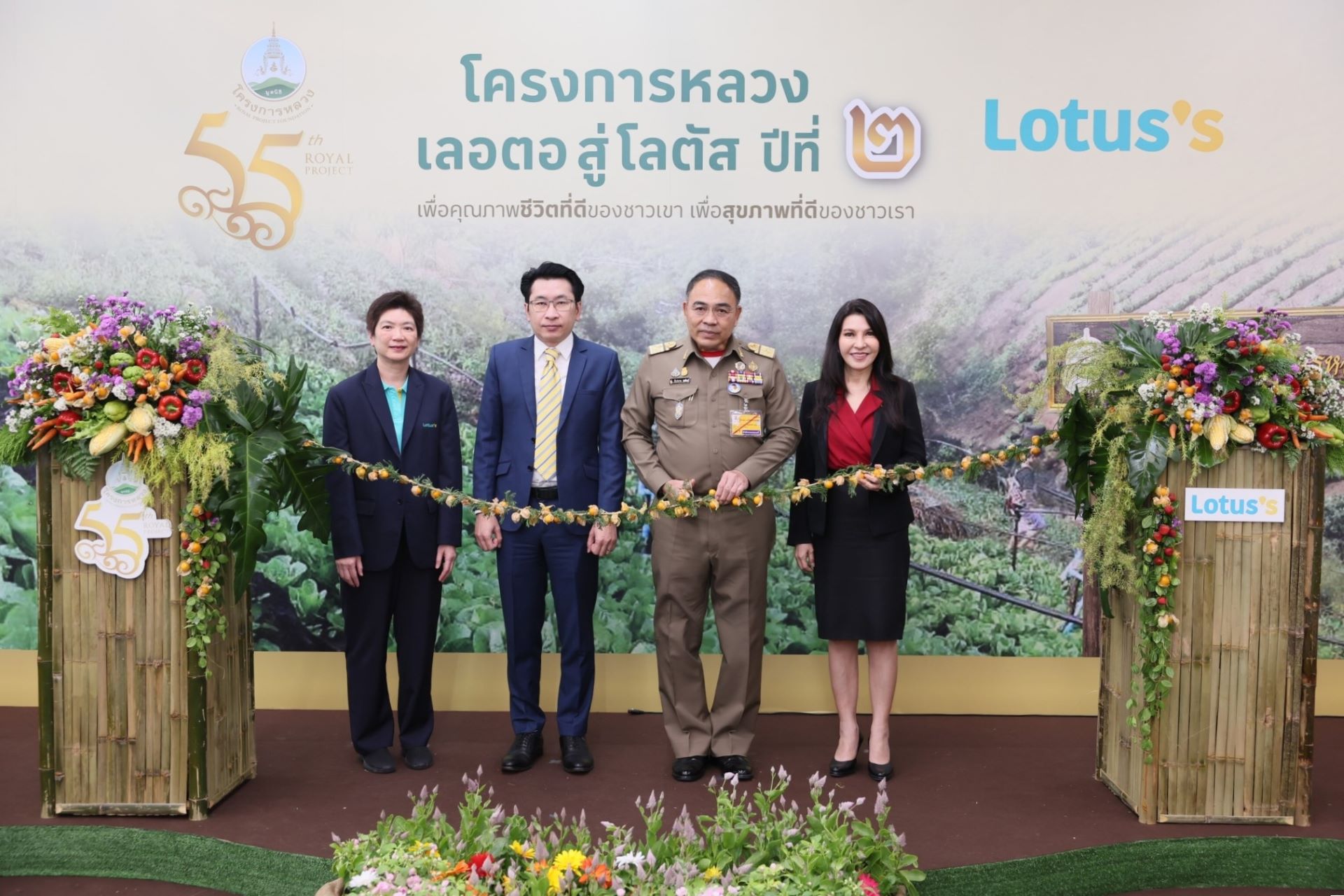 คุณมนต์ชัย อินทรพรอุดม ผู้อำนวยการอาวุโส สายงานปฏิบัติการธุรกิจไฮเปอร์มาร์เก็ต โลตัส กล่าวว่า “โลตัส ดำเนินธุรกิจอยู่บนพื้นฐานของความยั่งยืน คำนึงถึงการดูแลผู้มีส่วนได้ส่วนเสียตลอดห่วงโซ่คุณค่า รวมถึง สังคม ชุมชน และสิ่งแวดล้อม ให้สามารถเติบโตไปได้พร้อมกัน ทั้งนี้ โลตัส ได้ร่วมมือกับมูลนิธิโครงการหลวง มาต่อเนื่องกว่า 29 ปี พร้อมมีโอกาสเข้าไปสนับสนุนและทำงานร่วมกับ “ศูนย์พัฒนาโครงการหลวงเลอตอ” ในพื้นที่ตำบลแม่ตื่น อำเภอแม่ระมาด จังหวัดตาก เพื่อร่วมส่งเสริม สนับสนุน วางแผน รับซื้อผลผลิตทางการเกษตร และพัฒนาคุณภาพชีวิตความเป็นอยู่ของชุมชนและเกษตรกรที่ดีขึ้น ภายใต้โครงการ ‘เลอตอสู่โลตัส เพื่อคุณภาพชีวิตที่ดีของชาวเขา เพื่อสุขภาพที่ดีของชาวเรา’ ซึ่งปีนี้ได้จัดต่อเนื่องเป็นปีที่ 2 โดยโลตัส ได้เพิ่มการรับซื้อผลผลิตจากเกษตรกรและขยายช่องทางการจัดจำหน่ายสินค้าคุณภาพจากโครงการหลวงผ่านสาขากว่า 78 สาขา และช่องทางออนไลน์ พร้อมมีแผนเพิ่มการรับซื้ออย่างต่อเนื่อง เพื่อสร้างรายได้ที่ยั่งยืนให้กับเกษตรกรชาวเขาในเครือข่ายของโครงการหลวง ตามความมุ่งมั่นของโลตัสในการเป็นแพลทฟอร์มแห่งโอกาสของผู้ประกอบการเอสเอ็มอีและเกษตรกรไทยให้มีรายได้ที่มั่นคงและเติบโตได้อย่างยั่งยืน พร้อมกับสนับสนุนการมีสุขภาพและสุขภาวะที่ดีของลูกค้า ผ่านการเข้าถึงผักและผลไม้สดคุณภาพสูง ปลอดภัยได้มาตรฐานในราคาที่เอื้อมถึง”