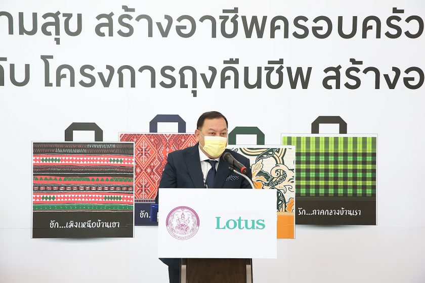 คุณสลิลลา สีหพันธุ์ ประธานกรรมการฝ่ายกิจการบรรษัท โลตัส กล่าวว่า “ผลกระทบทางเศรษฐกิจจากสถานการณ์การแพร่ระบาดของโรคโควิด-19 ส่งผลเป็นวงกว้าง โดยเฉพาะกลุ่มเกษตรกร และ ผู้ประกอบการขนาดเล็ก หรือ SME ซึ่งถือว่าเป็นกลุ่มหนึ่งที่ได้รับผลกระทบมากที่สุด ในปีนี้เราจึงจัดทำ โครงการ “ถุงคืนชีพ สร้างอาชีพ” ต่อยอดจากการครบรอบ 1 ปีที่งดแจกถุงพลาสติก เราจึงผนวกโครงการด้านสิ่งแวดล้อมอย่าง “ถุงคืนชีพ” เข้ากับโครงการเพื่อสังคม และนำรายได้ที่ได้รับจากการจำหน่ายถุงคืนชีพมอบให้กับผู้ประกอบการ SME ที่ได้รับผลกระทบ 77 รายทั่วประเทศ ด้วยการมอบเป็นอุปกรณ์ประกอบอาชีพสำหรับจำหน่ายอาหาร และเงินทุน รวมมูลค่าทุนละ 30,000 บาท หรือรวมทั้งหมด 2,310,000 บาท และร่วมมือกับกระทรวงการพัฒนาสังคมและความมั่นคงของมนุษย์ที่มีการจัดอบรมหลักสูตรต่างๆให้กับผู้ประกอบการ เป็นการมอบทุนตั้งต้น และองค์ความรู้ที่สำคัญ เพื่อใช้สร้างอาชีพให้กับกลุ่มคนที่ได้รับผลกระทบให้มีรายได้ที่ยั่งยืน”
