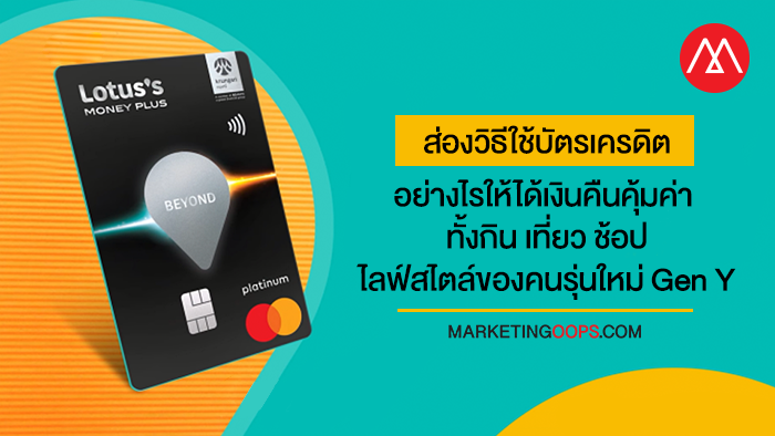โลตัส มันนี่ พลัส เข้าใจพฤติกรรมของกลุ่ม Gen Y แถมยังตรงกับการปรับภาพลักษณ์แบรนด์ครั้งยิ่งใหญ่ โดยร่วมมือกับ Mastercard ผู้นำระดับโลกด้านเทคโนโลยีการชำระเงิน เปิดตัว “บัตรเครดิตโลตัส” ภายใต้แนวคิด Up ไม่หยุดสุดทุกไลฟ์สไตล์ เพื่อขยายฐานลูกค้ากลุ่มคน Gen Y ที่มีไลฟ์สไตล์ทันสมัย มองหาความคุ้มค่า ใช้งานง่ายในชีวิตประจำวัน