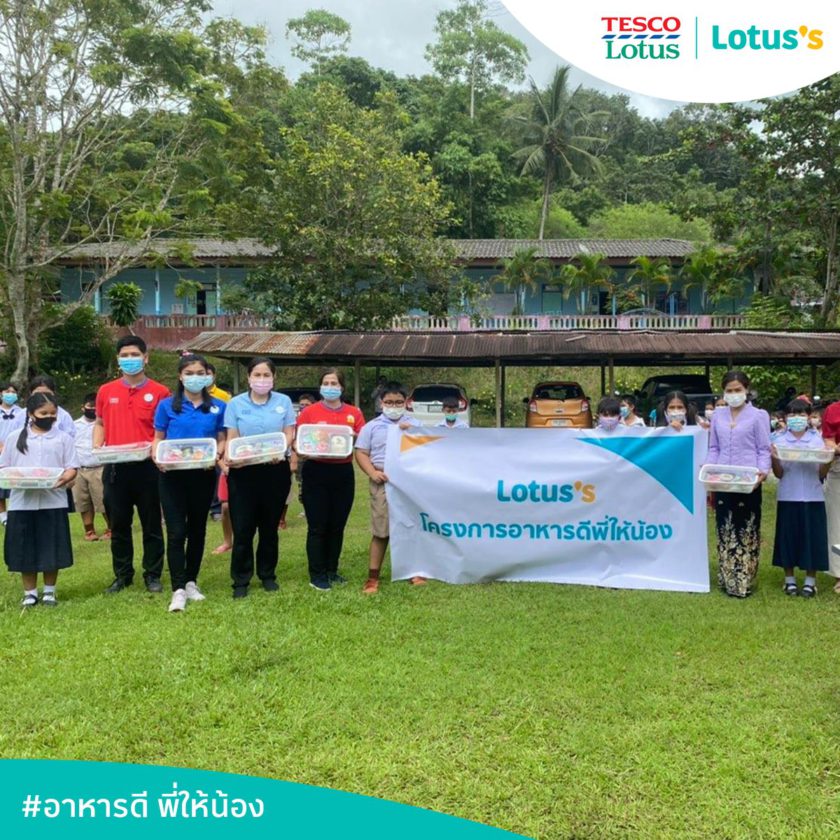 โรงเรียนบ้านสองพี่น้อง จ.ระนอง เป็นอีกโรงเรียนที่ได้รับผลกระทบ ทางโรงเรียนต้องเปลี่ยนระบบการเรียนการสอนเป็นแบบออนไลน์ ทำให้น้องๆไม่สามารถไปโรงเรียนได้ และเด็กๆส่วนใหญ่มีฐานะยากจน ต้องพึ่งอาหารกลางวันที่โรงเรียนเป็นอาหารมื้อหลัก เมื่อโรงเรียนไม่ได้เปิดให้เข้าเรียน ทางคุณครูจึงเริ่มจัดทำข้าวกล่อง ชุดตะกร้าพร้อมทาน และถุงยังชีพ ที่ประกอบไปด้วยอาหารสด อาหารแห้ง และผลไม้ ที่ได้รับจากโครงการอาหารดี พี่ให้น้อง ของโลตัส มอบให้กับน้องๆเพื่อรับประทานที่บ้านและส่งต่อให้กับผู้ปกครองนำไปปรุงอาหาร เป็นการแบ่งเบาภาระค่าอาหารของครอบครัวและยังทำให้น้องๆได้มีอาหารที่ดี มีคุณค่าทางโภชนาการไว้รับประทาน