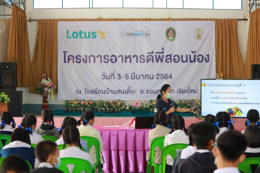 โครงการอาหารดีพี่สอน หนึ่งในโครงการความร่วมมือระหว่างโลตัสและมูลนิธิสานอนาคตการศึกษา(ConnextED) จัดขึ้นที่โรงเรียนในโครงการ โรงเรียนบ้านสบเตี๊ยะ อ.จอมทอง จ.เชียงใหม่ โดยความร่วมมือกับภาควิชาคหกรรมศาสตร์ คณะเทคโนโลยี มหาวิทยาลัยราชภัฎ เชียงใหม่ จัดการเรียนรู้เชิงปฏิบัติการ ให้เด็กๆ ได้เรียนรู้ตั้งแต่การคัดสรรวัตถุดิบท้องถิ่นเพื่อมาประกอบอาหาร ที่ดีมีประโยชน์ ดีต่อสุขภาพ ลด หวาน มัน เค็ม ตลอดจนความรู้เกี่ยวกับการลดขยะอาหาร หรือ food waste ทั้งที่โรงเรียนและที่บ้าน