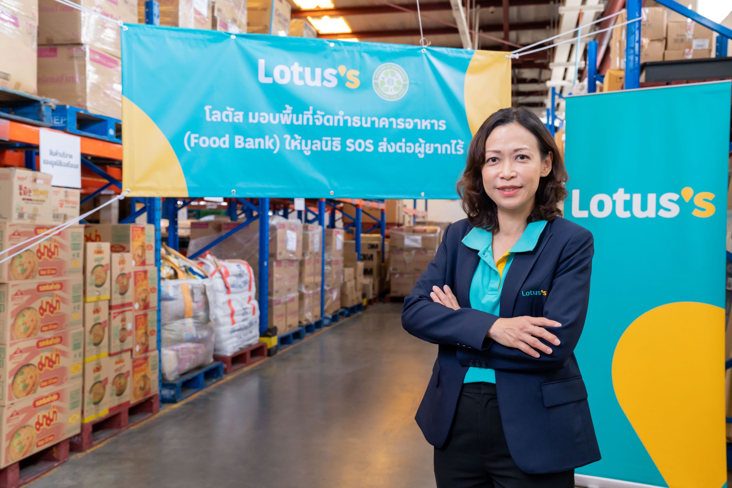 คุณสลิลลา สีหพันธุ์ ประธานเจ้าหน้าที่บริหารด้านความยั่งยืน ธุรกิจโลตัส ประเทศไทย กล่าวว่า “โลตัส ได้ริเริ่มโครงการกินได้ไม่ทิ้งกันตั้งแต่ปี 2560 โดยบริจาคอาหารที่จำหน่ายไม่หมดแต่ยังคงรับประทานได้ให้แก่ผู้ยากไร้ แทนการทิ้งให้กลายเป็นขยะอาหารซึ่งจะส่งผลกระทบต่อสิ่งแวดล้อม โดยร่วมมือกับหน่วยงานทั้งภาครัฐและเอกชน รวมถึงมูลนิธิ SOS ด้วย ปัจจุบันโลตัสบริจาคอาหารให้ผู้ยากไร้ในโครงการดังกล่าวรวมแล้วกว่า 2,800,000 มื้อ ล่าสุด โลตัสได้ร่วมมือกับมูลนิธิ SOS ในการขับเคลื่อนธนาคารอาหารแห่งชาติ โดยมอบพื้นที่เก็บสินค้าของโลตัส สาขาบ้านฟ้า ลำลูกกา ให้มูลนิธิ SOS ใช้ประโยชน์ในการจัดเก็บอาหารที่ได้รับการบริจาคจากองค์กรต่าง ๆ ทั้งอาหารสดและอาหารแห้ง เพื่อรอการกระจายต่อให้ชุมชนเปราะบางและผู้ด้อยโอกาส โลตัส ในฐานะห้างค้าปลีกที่จำหน่ายอาหารสดคุณภาพสูงที่สะอาด ปลอดภัย มีพื้นที่เก็บสินค้าและระบบการจัดการสินค้าอาหารที่ได้มาตรฐานและมีความปลอดภัยสำหรับการบริโภค การมอบพื้นที่ให้มูลนิธิ SOS จึงจะช่วยเสริมประสิทธิภาพด้านการบริหารจัดการธนาคารอาหารของมูลนิธิให้ดียิ่งขึ้น ขยายขีดความสามารถให้มีศูนย์จัดเก็บอาหารบริจาคในปริมาณมากขึ้น พร้อมตู้ควบคุมอุณหภูมิที่สามารถจัดเก็บอาหารสดและอาหารแห้งได้ยาวนานขึ้น ถูกสุขอนามัยและคงคุณค่าทางโภชนาที่ดีไว้ได้ เพื่อเป็นศูนย์เก็บและกระจายอาหารบริจาคให้ผู้ด้อยโอกาสในพื้นที่ลำลูกกาและบริเวณใกล้เคียง ซึ่งนอกจากจะเป็นการช่วยเหลือชุมชนผู้ด้อยโอกาสแล้ว ยังช่วยผลักดันเป้าหมายของเครือเจริญโภคภัณฑ์ที่จะลดขยะอาหารให้เป็นศูนย์ภายในปีค.ศ. 2030 (Zero food waste to landfill by 2030) อีกด้วย”