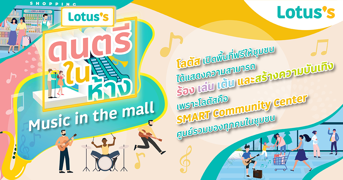 คุณเบญจวรรณ อ่องศรี ผู้อำนวยการบริหารฝ่ายศูนย์การค้าและพื้นที่เช่า โลตัส กล่าวว่า “จุดมุ่งหมายของโลตัส คือการให้สาขาของเราเป็น SMART Community Center ศูนย์รวมการใช้ชีวิตในแบบสมาร์ทที่เป็นพื้นที่สำหรับทุกคนในชุมชน เราก็ได้พัฒนาศูนย์การค้าอย่างต่อเนื่อง มีการเปิดสาขาใหม่ที่มีรูปลักษณ์การออกแบบที่พิเศษแปลกตาขึ้น SMART ขึ้น รวมถึงในสาขาเดิมที่เรามีอยู่แล้ว ก็มีการยกระดับบริการอย่างต่อเนื่อง นำเทคโนโลยีมาใช้เพิ่มความสะดวกสบายให้ลูกค้า และยังมีการจัดกิจกรรมพิเศษเพื่อมอบประสบการณ์ช้อปปิ้งที่น่าประทับใจให้ลูกค้าด้วย ซึ่ง “ดนตรีในห้าง” ก็เป็นอีกหนึ่งกิจกรรมล่าสุดที่โลตัสจัดขึ้น เพื่อตอบสนองไลฟ์สไตล์ผู้ที่ชื่นชอบดนตรี และสอดรับกับสถานการณ์ปัจจุบันที่คนกลับมาใช้ชีวิตนอกบ้านอย่างผ่อนคลายกันมากขึ้น และเพื่อต้อนรับผู้เข้ามาใช้บริการในสาขาทุกท่าน ด้วยบรรยากาศสบาย ๆ ให้ลูกค้าเพลิดเพลินขณะช้อปปิ้ง และที่สำคัญยังเป็นพื้นที่แห่งโอกาสของศิลปินรุ่นใหม่ที่ต้องการเวทีในการมาแสดงความสามารถกันอย่างเต็มที่ เป็นไปตามความตั้งใจของโลตัสที่ต้องการจะตอบสนองความต้องการของคนในชุมชนที่อยู่ในบริเวณโดยรอบสาขา ยกระดับคุณภาพชีวิตและสร้างโอกาสให้ทุกคนในชุมชน จึงขอเชิญชวนน้อง ๆ ศิลปินหรือผู้สนใจที่อยู่ในละแวกใกล้เคียงสาขา มาร่วมสร้างความบันเทิง เปิดหมวกร้องเพลง และกิจกรรมสร้างสรรค์อื่น ๆ เราก็มีพื้นที่ให้ทุกคนได้เข้ามามีส่วนร่วมกับโลตัสได้โดยไม่มีค่าใช้จ่ายเช่นกัน และขอเชิญชวนลูกค้าแวะมาร่วมรับฟังเพลงเพราะ ๆ และสัมผัสความบันเทิงที่โลตัสทุกสาขาทั่วประเทศ นอกจากจะได้ช้อปปิ้งอย่างเพลิดเพลินใจแล้วยังเป็นการช่วยสนับสนุนศิลปินและผู้มีความสามารถหน้าใหม่ด้วย”