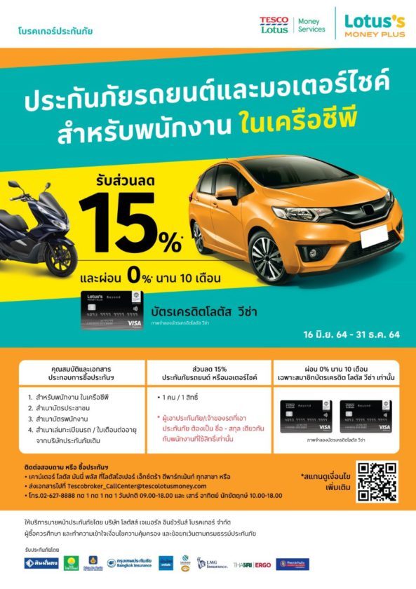 เงื่อนไขส่วนลด 15% ประกันภัยรถยนต์ และมอเตอร์ไซค์ สำหรับพนักงานในเครือซีพี