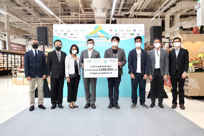 ทั้งนี้ โลตัสร่วมสมทบเงินบริจาคส่วนหนึ่ง จำนวนรวมทั้งสิ้น 2,658,000 บาท (สองล้านหกแสนห้าหมื่นแปดพันบาทถ้วน) ให้แก่ 2 องค์กรการกุศล มูลนิธิแพทย์ชนบท และกลุ่มเส้นด้าย เพื่อนำไปจัดหาอุปกรณ์ และสิ่งของจำเป็นต่อการช่วยเหลือผู้ป่วยโควิด-19