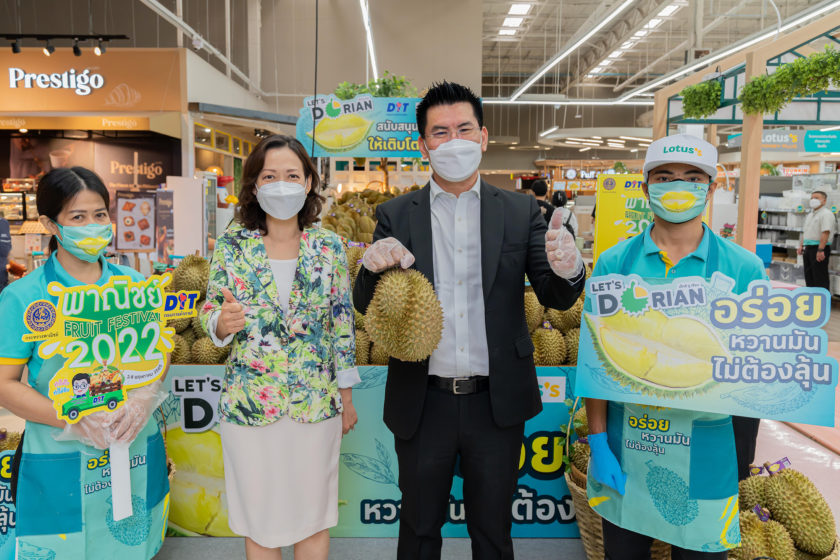 คุณสลิลลา สีหพันธุ์ ประธานเจ้าหน้าที่บริหารด้านความยั่งยืน โลตัส (คนที่ 2 จากซ้าย) พร้อมด้วย คุณวัฒนศักย์ เสือเอี่ยม อธิบดีกรมการค้าภายใน กระทรวงพาณิชย์ (คนที่ 3 จากซ้าย) ร่วมเปิดตัวเทศกาลทุเรียนโลตัส ช่วยเกษตรกรกระจายผลผลิตส่งตรงถึงมือลูกค้า โดยเป็นโครงการความร่วมมือระหว่างกระทรวงพาณิชย์และโลตัส ซึ่งโลตัสช่วยสนับสนุนและส่งเสริมการตลาด ช่องทางการจำหน่ายสินค้าให้กับเกษตรกร รับซื้อทุเรียน 3 ล้านกิโลกรัม และจัดเทศกาลทุเรียนที่โลตัส ไฮเปอร์มาร์เก็ต ทั่วประเทศ เพื่อให้ลูกค้าและประชาชนสามารถเข้าถึงทุเรียนคุณภาพสูงในราคาที่เอื้อมถึงได้ คัดสรรทุเรียนมาจากแหล่งที่ดีที่สุด ตั้งแต่กระบวนการคัด ตัด ไปจนถึงการขนส่งไปยังสาขาที่ใช้รถควบคุมอุณหภูมิ คงความสดใหม่ โดยเทศกาลทุเรียนเป็นส่วนหนึ่งของแผนงานสนับสนุนเกษตรกรของโลตัส ในการรับซื้อผลไม้ตามฤดูกาล ซึ่งรวมถึงมังคุด เงาะ มะม่วง ลำไย ลิ้นจี่ ลองกอง และอื่น ๆ โดยโลตัสวางแผนในการรับซื้อทั้งหมด 18 ล้านกิโลกรัมในปีนี้ เพื่อสนับสนุนเกษตรกรไทยให้เติบโตไปด้วยกันอย่างยั่งยืน