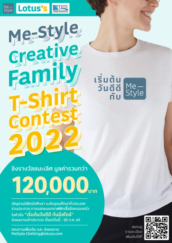 โลตัส ร่วมมือกับ สถาบันพัฒนาอุตสาหกรรมสิ่งทอ ในสังกัดกระทรวงอุตสาหกรรม สนับสนุน young designers นักออกแบบรุ่นใหม่ เตรียมประสบการณ์สู่เส้นทางอาชีพ จัดประกวดออกแบบกราฟฟิกเสื้อยืดครอบครัวแบรนด์ MeStyle ในระดับอุดมศึกษาทั่วประเทศ ภายใต้หัวข้อ “เริ่มต้นวันดีดี กับมีสไตล์” ชิงรางวัลมูลค่ารวม 120,000 บาท โดยผลงานที่ชนะเลิศจะได้รับการพิมพ์บนเสื้อยืดเพื่อจำหน่ายในโลตัสทั่วประเทศ และมีโอกาสได้รับการว่าจ้างให้ออกแบบเสื้อสำหรับคอลเลกชันฤดูร้อน 2566 อีกด้วย จึงขอเชิญชวนนิสิตนักศึกษาที่สนใจร่วมส่งผลงานได้ตั้งแต่วันนี้ถึงวันที่ 20 กรกฎาคม 2565 โดยสามารถดูรายละเอียดของโครงการและกติกาการแข่งขันได้ทาง https://corporate.lotuss.com/news/hypermarket/142/