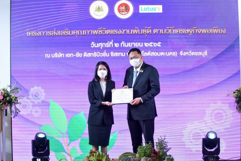 โลตัส โดย คุณสาวอรวลัญช์ สีวลีพันธ์ ผู้อำนวยการฝ่ายทรัพยากรบุคคลกลาง (เอเชีย) (ซ้าย) รับรางวัล สถานประกอบการดีเด่น ด้านแรงงานสัมพันธ์และสวัสดิการแรงงาน จาก คุณสุชาติ ชมกลิ่น รัฐมนตรีว่าการกระทรวงแรงงาน (ขวา) ซึ่งโลตัสได้รับรางวัลนี้ติดต่อกัน 16 ปีซ้อน สะท้อนความสำเร็จด้านการดูแลเพื่อนพนักงานและมีสวัสดิการที่ได้มาตรฐาน สนับสนุนให้เพื่อนพนักงานมีคุณภาพชีวิตที่ดี สร้างงาน สร้างอาชีพ และสร้างโอกาสในการเติบโต ทำให้พนักงาน “รู้สึกดีดีทุกวัน ที่โลตัส” เพื่อส่งต่อประสบการณ์ดีดีให้ลูกค้าและผู้มาใช้บริการ นอกจากนี้ โลตัสยังสนับสนุนเปิดพื้นที่สาขาอมตะนคร จ.ชลบุรี  เพื่อจำหน่ายพืชผลทางเกษตรในโครงการส่งเสริมคุณภาพชีวิตแรงงานพันธุ์ดี ตามวิถีเศรษฐกิจพอเพียง โดยกรมสวัสดิการและคุ้มครองแรงงาน สำนักแรงงานสัมพันธ์ อีกด้วย