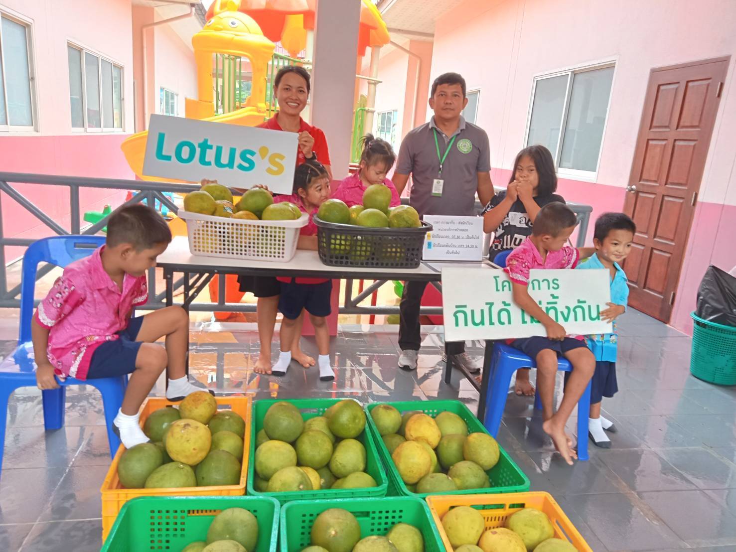 โลตัส ต่อยอด โครงการกินได้ไม่ทิ้งกัน ส่งมอบส้มโอที่ความหวานยังไม่ได้มาตรฐานของโลตัส แต่ยังอร่อยและคุณภาพดี กว่า 25,000 ลูก ให้กับพันธมิตร ได้แก่ มูลนิธิรักษ์อาหาร (SOS Thailand), เกษตรกรเพาะเลี้ยงแมลงโปรตีน (BSF) และสถานีเพาะเลี้ยงสัตว์ป่าทั่วประเทศ สำหรับใช้ประโยชน์ต่อไปในด้านต่างๆ อาทิ แปรรูปเป็นเมนูอาหาร รวมไปถึงสามารถเป็นอาหารสัตว์ เพื่อช่วยลดต้นทุนอาหารเลี้ยงสัตว์ โดยเป็นการบริหารจัดการอาหารไม่ให้เน่าเสีย และช่วยปริมาณการเกิดขยะอาหาร