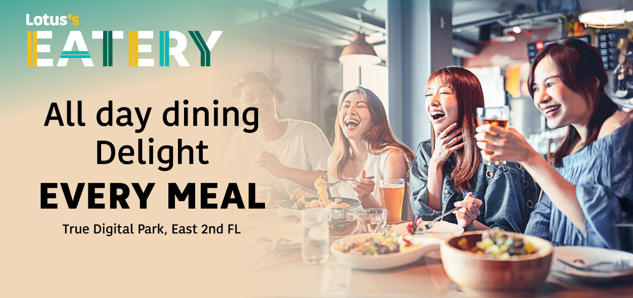 โลตัส เดินหน้าการเป็น Inspiring Fresh & Food Destination จุดหมายปลายทางสำหรับอาหารและอาหารสดคุณภาพสูง เสิร์ฟความอร่อยขยายออกนอกพื้นที่โลตัส เปิดตัว Lotus’s Eatery ศูนย์อาหาร แบบ Stand Alone ครั้งแรก! ในโครงการทรู ดิจิทัล พาร์ค (อีสต์) ชั้น 2 บนพื้นที่กว่า 1,500 ตร.ม. จัดเต็มกว่า 50 ร้านค้า ทั้งสตรีทฟู้ดชื่อดังและร้านมิชลินไกด์ ครบรสชาติคาวหวาน ชูคอนเซ็ปต์  “All day dining, delight every meal” และพิเศษกว่าการเป็นศูนย์อาหาร แต่อัพเลเวลเป็นแหล่งแฮงก์เอ้าต์แห่งใหม่ของชาวออฟฟิศและผู้ใช้ชีวิตในย่านสุขุมวิท รองรับไลฟ์สไตล์การใช้ชีวิตกิน-ดื่ม-แฮงก์เอ้าต์ ตั้งแต่เช้าถึงค่ำ