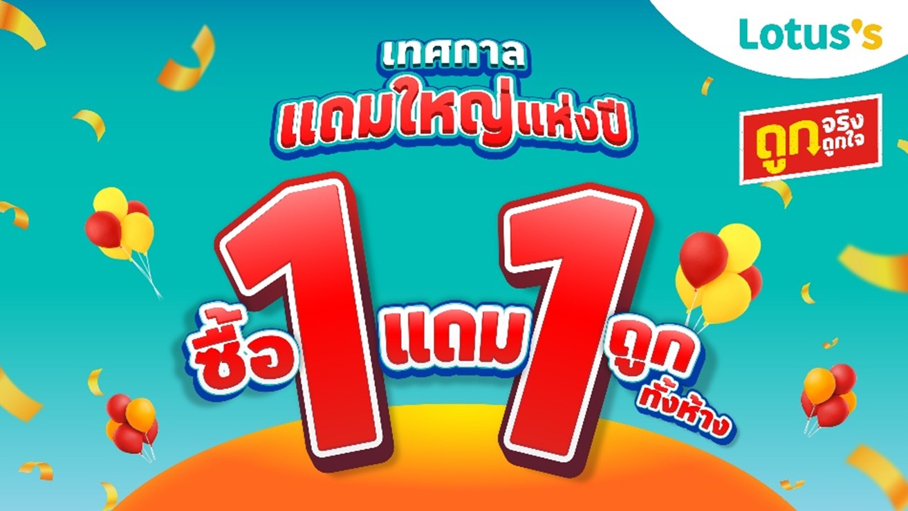 โลตัส จัด เทศกาลแถมใหญ่แห่งปี ซื้อ 1 แถม 1 ถูกทั้งห้าง ขนทัพสินค้ากว่า 600 รายการ ทั้งของกินของใช้จำเป็น อาหารสด พิเศษ! เครื่องใช้ไฟฟ้า ส่งความคุ้มค่าแบบจัดหนักจัดเต็มทั้งในสาขาของโลตัสทั่วประเทศและช้อปปิ้งออนไลน์ผ่าน Lotus’s SMART App ตั้งแต่วันที่ 17 สิงหาคม – 20 กันยายน 2566