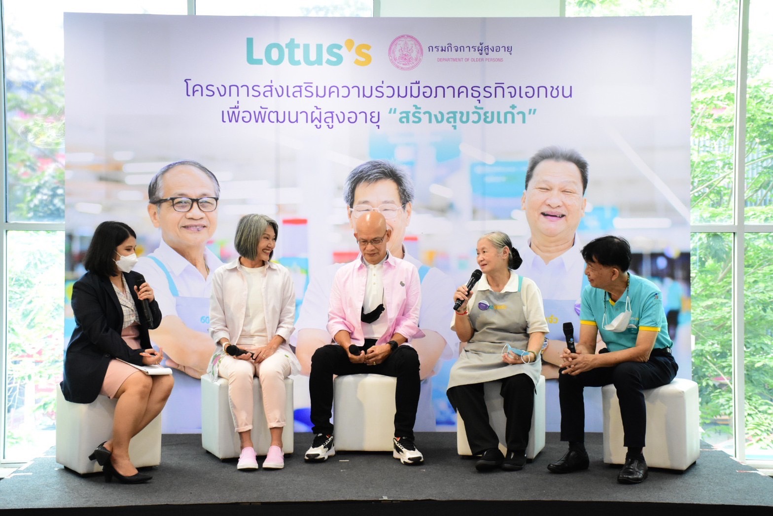 โลตัส ร่วมกับกรมกิจการผู้สูงอายุ กระทรวงการพัฒนาสังคมและความมั่นคงของมนุษย์ (พม.) จัดกิจกรรม “สร้างสุขวัยเก๋า” สนับสนุนโครงการส่งเสริมความร่วมมือภาคธุรกิจเอกชนเพื่อพัฒนาผู้สูงอายุ โดยร่วมมือกับแพทย์ พยาบาล นักโภชนาการและผู้เชี่ยวชาญ มีส่วนร่วมแบ่งปันประสบการณ์ความรู้ในงาน อาทิ การเสวนาเรื่องสะสมสุขภาพดีเป็นบำนาญชีวิต สิทธิและสวัสดิการผู้สูงอายุ, การดูแลและทักษะพื้นฐานในการดูแลผู้สูงอายุ เรื่องโรคและกลุ่มอาการผู้สูงอายุและการปฐมพยาบาลเบื้องต้น รวมทั้งมีบูธตรวจสุขภาพสำหรับผู้สูงอายุฟรี พร้อมกิจกรรมเวิร์กชอปสอนการทำอาหารเพื่อสุขภาพ และจำหน่ายสินค้า เพื่อส่งเสริมการดูแลสุขภาพในผู้สูงอายุ และสนับสนุนสังคมและครอบครัวร่วมส่งต่อความรักให้แก่ผู้สูงอายุ สร้างความผูกพันของคนทุกวัยภายในครอบครัว ในระหว่างวันที่ 17-18 กุมภาพันธ์ ที่ผ่านมา ณ ศูนย์อาหารชั้น 2 โลตัส สาขาพระราม 1