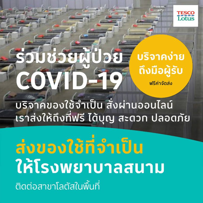 โลตัสชวนคุณส่งอาหารและของใช้ที่จำเป็นให้กับบุคลากรทางการแพทย์ หมอ พยาบาล หน่วยงานอาสา และผู้ป่วยโควิด-19 ที่โรงพยาบาลสนาม 6 แห่งทั่วประเทศ