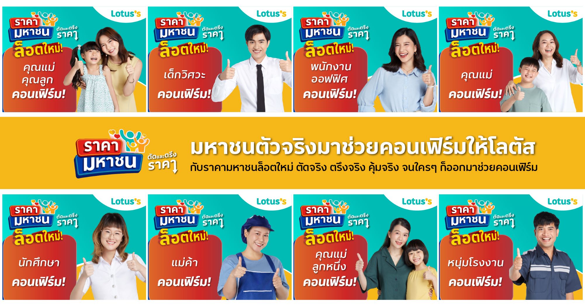 คุณวรวรรณ เพียรลิขิตวงศ์ ผู้อำนวยการบริหารฝ่ายการตลาด โลตัส กล่าวว่า “โลตัส มุ่งส่งมอบสินค้าคุณภาพสูงในราคาที่เอื้อมถึง เราออกแบบแคมเปญทางการตลาดที่เข้าใจลูกค้าเพื่อตอบโจทย์ทุกความต้องการ และพร้อมเคียงข้างลูกค้าในทุกสถานการณ์ ส่งมอบความคุ้มค่าที่มากกว่าราคาประหยัดให้กับลูกค้าของเรา โดยตลอดระยะเวลาที่ผ่านมาท่ามกลางผลกระทบทางเศรษฐกิจจากสถานการณ์โควิด-19 ลูกค้าและประชาชนยังคงมีความกังวลในเรื่องค่าครองชีพ เมื่อเดือนมกราคมที่ผ่านมา โลตัสจึงจัดแคมเปญราคามหาชนที่คัดสรรสินค้าจำเป็นจากการรับฟังเสียงความต้องการของมหาชน มาตัดและตรึงราคา โดยได้รับเสียงตอบรับที่ดีจากลูกค้าที่มาร่วมยืนยันว่าแคมเปญราคามหาชนในครั้งนี้คุ้มค่าและตอบโจทย์ลูกค้าจริง ๆ เราจึงตัดสินใจขยายเวลาแคมเปญราคามหาชนต่อไปอีก 8 สัปดาห์ เพื่อช่วยลูกค้าประหยัด จัดสินค้าราคาพิเศษที่ครอบคลุมของกินของใช้จำเป็นกว่า 600 รายการ มาตัดและตรึงราคาเพิ่มความคุ้มค่าให้คนไทย โดยสามารถซื้อสินค้าได้ทั้งในสาขาและช่องทางออนไลน์ และลูกค้ายังสามารถสะสมแต้มสมาชิกมายโลตัสพร้อมรับส่วนลดและสิทธิพิเศษอื่น ๆ เพิ่มเติมได้อีกด้วย