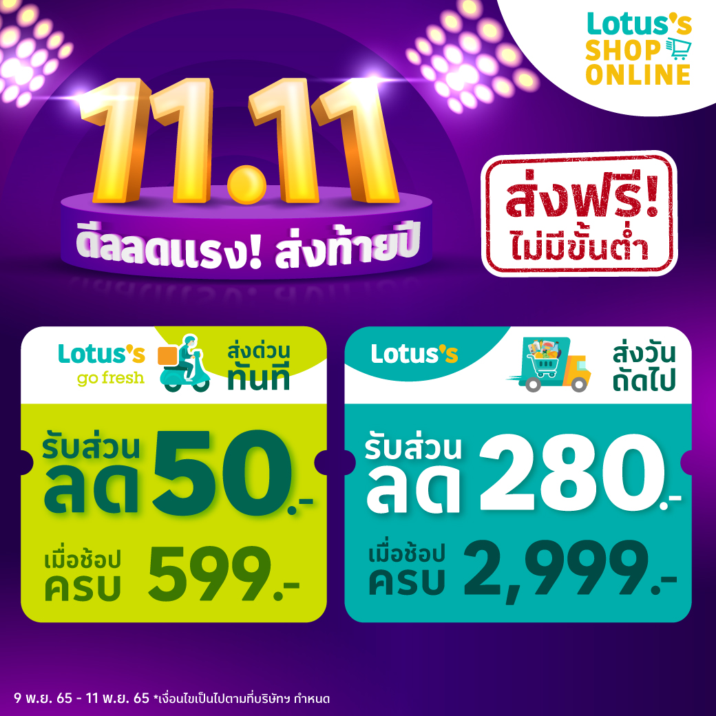 โลตัส ส่งแคมเปญพิเศษฉลอง 11.11 มอบโปรโมชั่นมากมาย ได้แก่