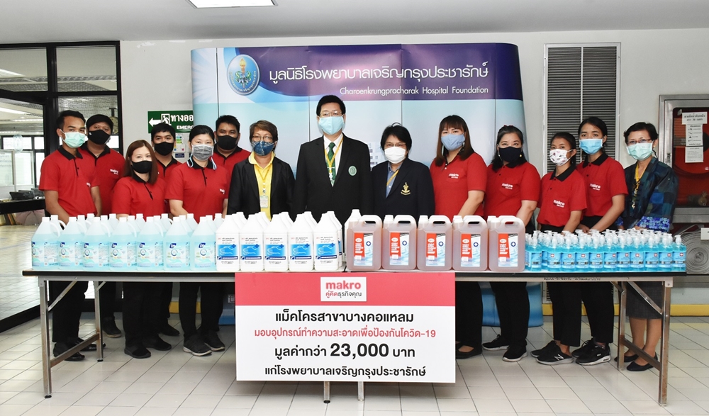 ด้วยแม็คโครฟูดเซอร์สาขาบางคอแหลม (สาขาลำดับที่ 135) จังหวัดกรุงเทพ จะเปิดสาขาในวันที่ 16 กันยายน นี้ บริษัท สยามแม็คโคร จำกัด (มหาชน) โดย คุณฐิติกานต์ พูลสวัสดิ์ ผู้จัดการเขต 11 และคุณปุณยวีร์ คงเจียมศิริ ผู้จัดการทั่วไปแม็คโครฟูดเซอร์วิสสาขาบางคอแหลม รวมถึงพนักงานงานสาขา ได้ลงพื้นและมอบอุปกรณ์ทำความสะอาดเพื่อป้องกันโควิด-19 อาทิ เจลแอลกอฮอล์ล้างมือ น้ำยาล้างมือ เป็นต้น มูลค่ากว่า 23,000 บาท ให้แก่โรงพยาบาลเจริญกรุงประชารักษ์ โดยมี นพ.เกรียงไกร ตั้งจิตรมณีศักดา ผู้อำนวยการ โรงพยาบาลเจริญกรุง ประชารักษ์ เป็นตัวแทนรับมอบ
