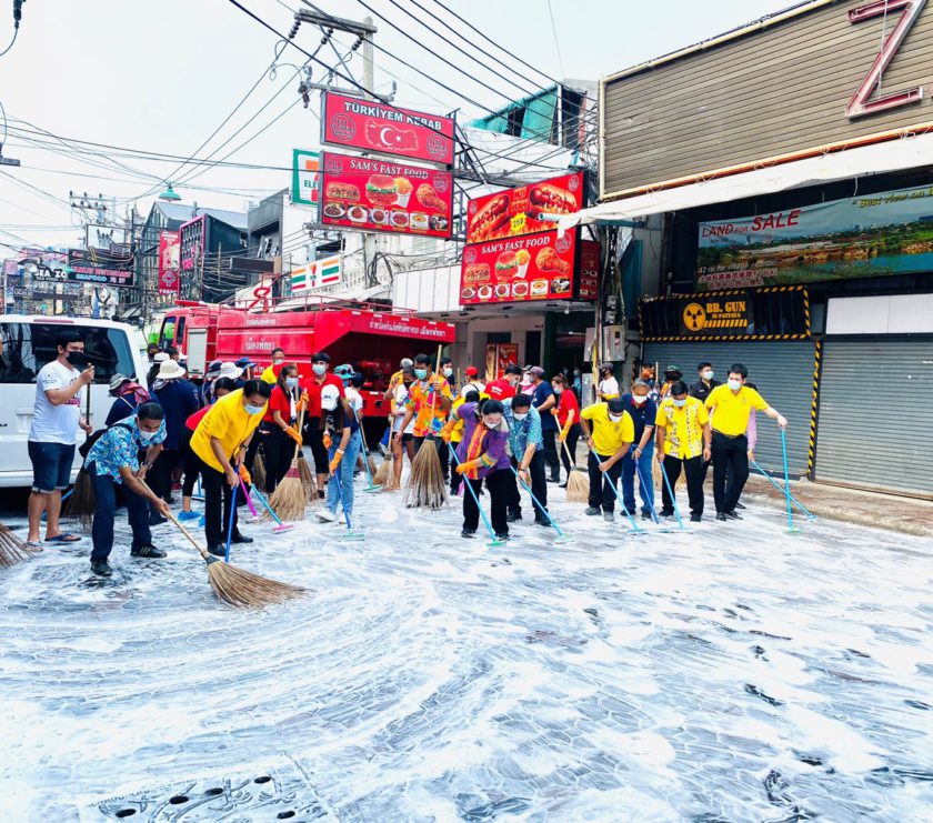 คุณจันทร์จิรา หิรัญธนเศรษฐ์ ผู้จัดการทั่วไป แม็คโครสาขาพัทยาเหนือ ชวนน้องๆ พนักงาน มาร่วมสร้างความสุขให้ชุมชนและสังคม โดยการทำความสะอาด ป้องกันการแพร่ระบาดของ COVID-19 เพื่อความปลอดภัยของประชาชน พร้อมกับภาคีเครือข่ายจากองค์กรภาครัฐ ภาคเอกชน นำโดยคุณสนธยา คุณปลื้ม นายกเมืองพัทยา ณ ถนนวอล์คกิ้งสตรีท เมืองพัทยา จังหวัดชลบุรี