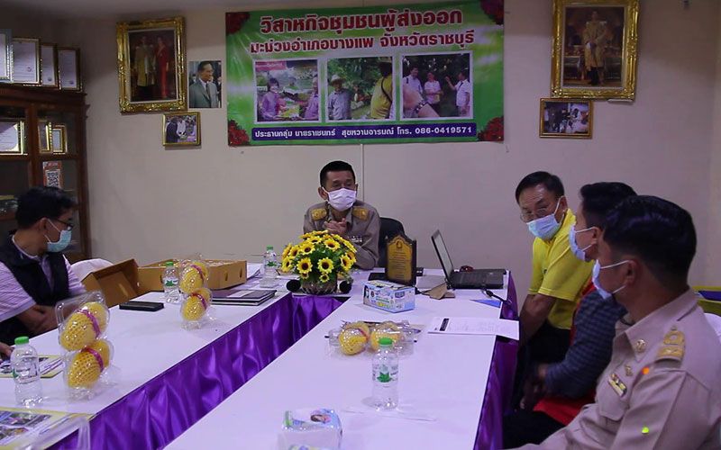 คุณราเชนทร์ สุขหวานอารมณ์ ประธานกลุ่มวิสาหกิจชุมชนผู้ส่งออกมะม่วงอำเภอบางแพ จ.ราชบุรี กล่าวถึงการร่วมมือกับห้างค้าส่งขนาดใหญ่ที่จะรับซื้อมะม่วงและกระจายสินค้าไปยังสาขาทั่วประเทศในครั้งนี้ว่า จากสถานการณ์โควิด-19 ระบาดทั่วโลกรวมทั้งประเทศไทยทำให้การส่งออกมะม่วงลดลง อีกทั้งสภาพอากาศของไทยปีนี้หนาวเย็นทำให้ผลผลิตมะม่วงออกสู่ตลาดมากกว่าทุกปี