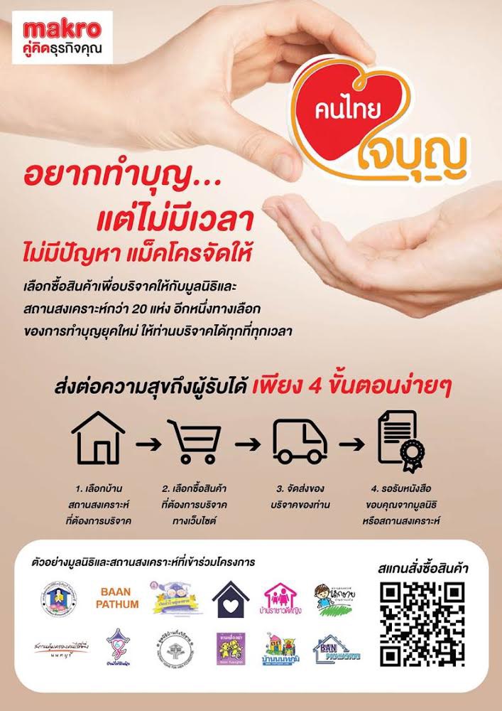 สยามแม็คโคร ชวนเพื่อนพนักงานในเครือเจริญโภคภัณฑ์ ร่วมทำบุญออนไลน์ ผ่านเว็บไซต์ http://donation.makroclick.com/th