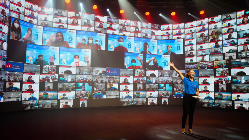 2. ถ่ายทอดสดการแข่งขัน ทาง Zoom และทาง Website เพื่อให้พนักงาน ผู้บริหาร และแขกผู้มีเกียรติได้รับชมแบบใกล้ชิดติดขอบเวที ด้วยเทคนิค CG แสง สี สุดล้ำ มีจำนวนพนักงาน ทั้งในประเทศและต่างประเทศ และแขกผู้มีเกียรติ ร่วมชม ทั้งทางออนไลน์ และ ออฟไลน์ กว่า 3,000 คน