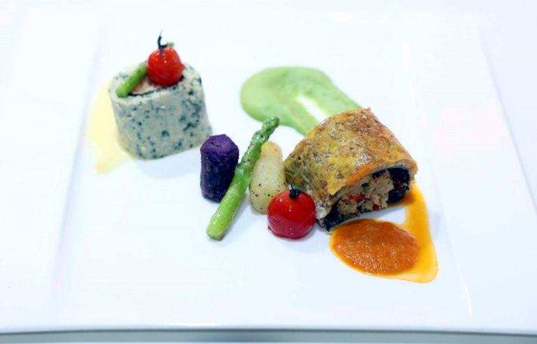 วัตถุดิบปริศนาของ “มาโนชย์” คือ เนื้อจระเข้ เขามองว่า นี่คือการเปิดประสบการณ์ใหม่ๆ ให้เชฟ และคนทั่วไปได้รู้ว่าแม็คโครมีวัตถุดิบดีๆ ตัวนี้อยู่ แถมยังได้ช่วยเหลือเกษตรกรผู้เลี้ยงด้วย ซึ่งเขาได้นำมารังสรรค์เป็นเมนู “เวลลิงตั้นจระเข้ซอสพริกระฆัง มูสปลาสองสีกับซอสเบอร์บล็อง พูเรถั่วลันเตา มันซัวเต” ได้คะแนนสูงสุดในระดับเหรียญทอง ไปครอง