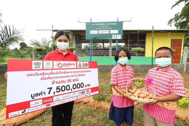 โดยในวันนี้บริษัทสยามแม็คโคร จำกัด (มหาชน) นำโดย คุณสุชาดา อิทธิจารุกุล ประธานเจ้าหน้าที่บริหาร – กลุ่มธุรกิจสยามแม็คโคร ร่วมกับ บริษัท ไซเบอร์ พริ้นกรุ๊ป จำกัด และสโมสรโรตารีกรุงเทพวิภาวดี เป็นผู้ส่งมอบโรงเรือนเลี้ยงไก่ไข่จำนวน 30 โรง ณ โรงเรียนบ้านโคกไพล ต.ทัพราช อ.ตาพระยา จ.สระแก้ว โดยมีคุณบุญเลิศ ค่อนสะอาด ผู้แทนเลขาสำนักงานคณะกรรมการการศึกษาขั้นพื้นฐานในการรับมอบ และมีคุณวิทยา มากปาน รองผู้ว่าราชการจังหวัดสระแก้ว ให้เกียรติมาเป็นสักขีพยาน